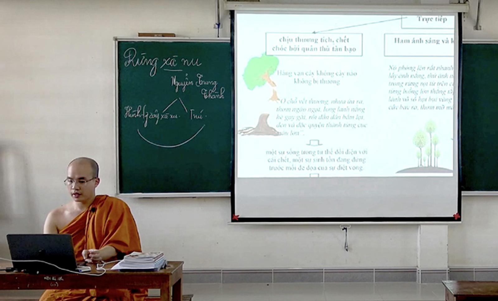 Sư thầy dạy học qua ứng dụng công nghệ. Ảnh: NVCC