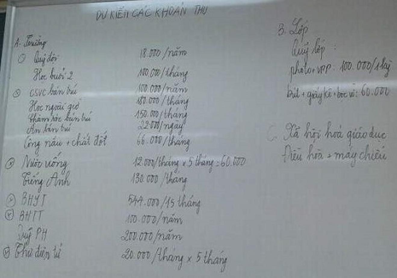 Nhà trường thông báo các khoản phụ huynh phải đóng trong cuộc Họp phụ huynh đầu năm (Ảnh do phụ huynh cung cấp)