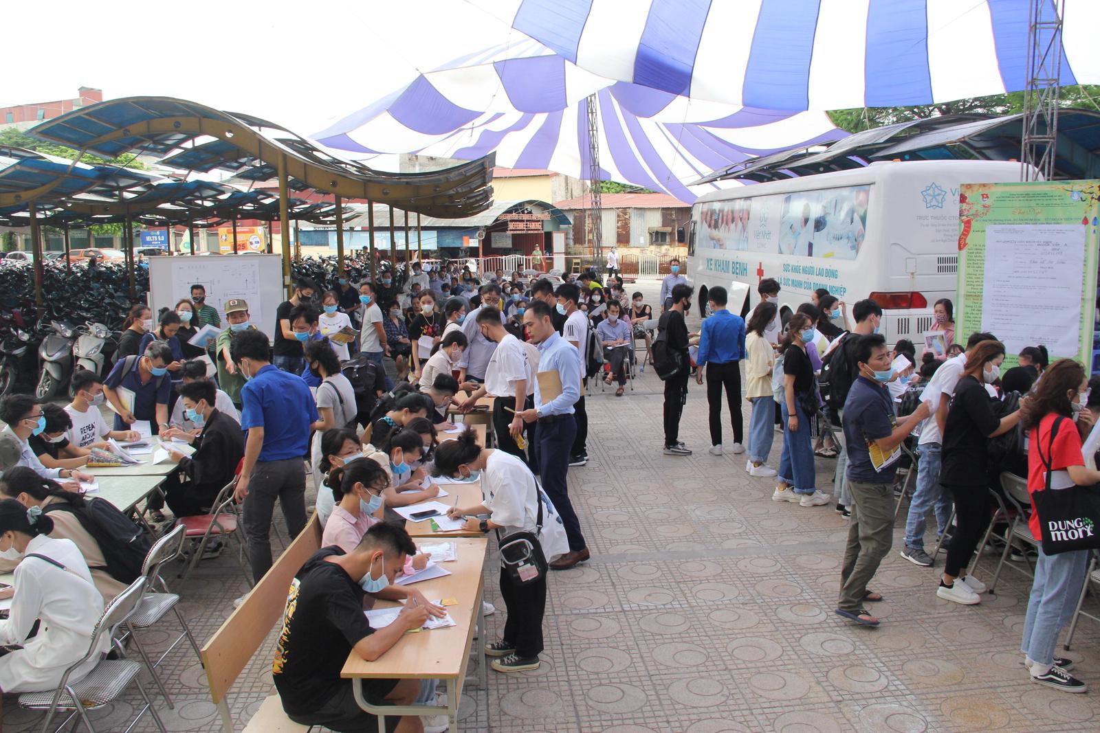 Các tân sinh viên tham gia khám sức khỏe tại HUBT