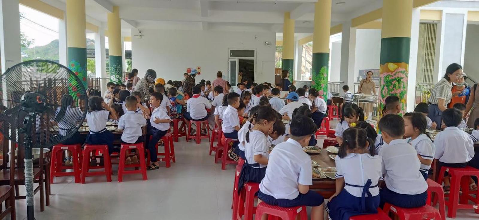Phòng ăn tươm tất của các em học em bán trú. Ảnh: N.P
