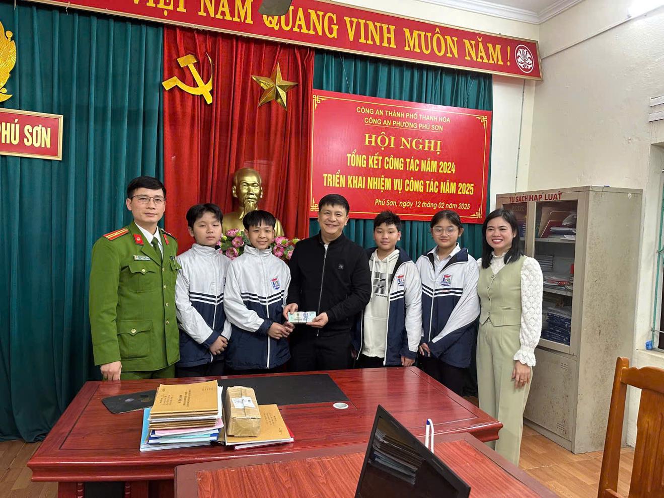 Đến chiều cùng ngày, nạn nhân đánh rơi hơn 40 triệu đồng đã đến Công an phường Phú Sơn nhận lại tiền đánh rơi, đồng thời cảm ơn Trường THCS Trần Phú và các em học sinh.