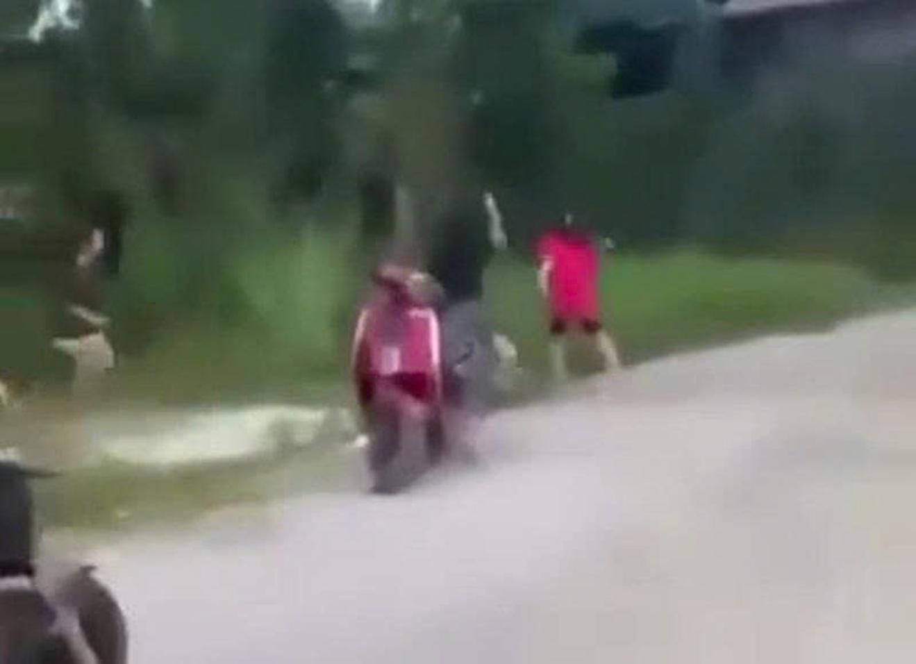 Hai học sinh vác dao chém nhau. Ảnh: cắt từ clip