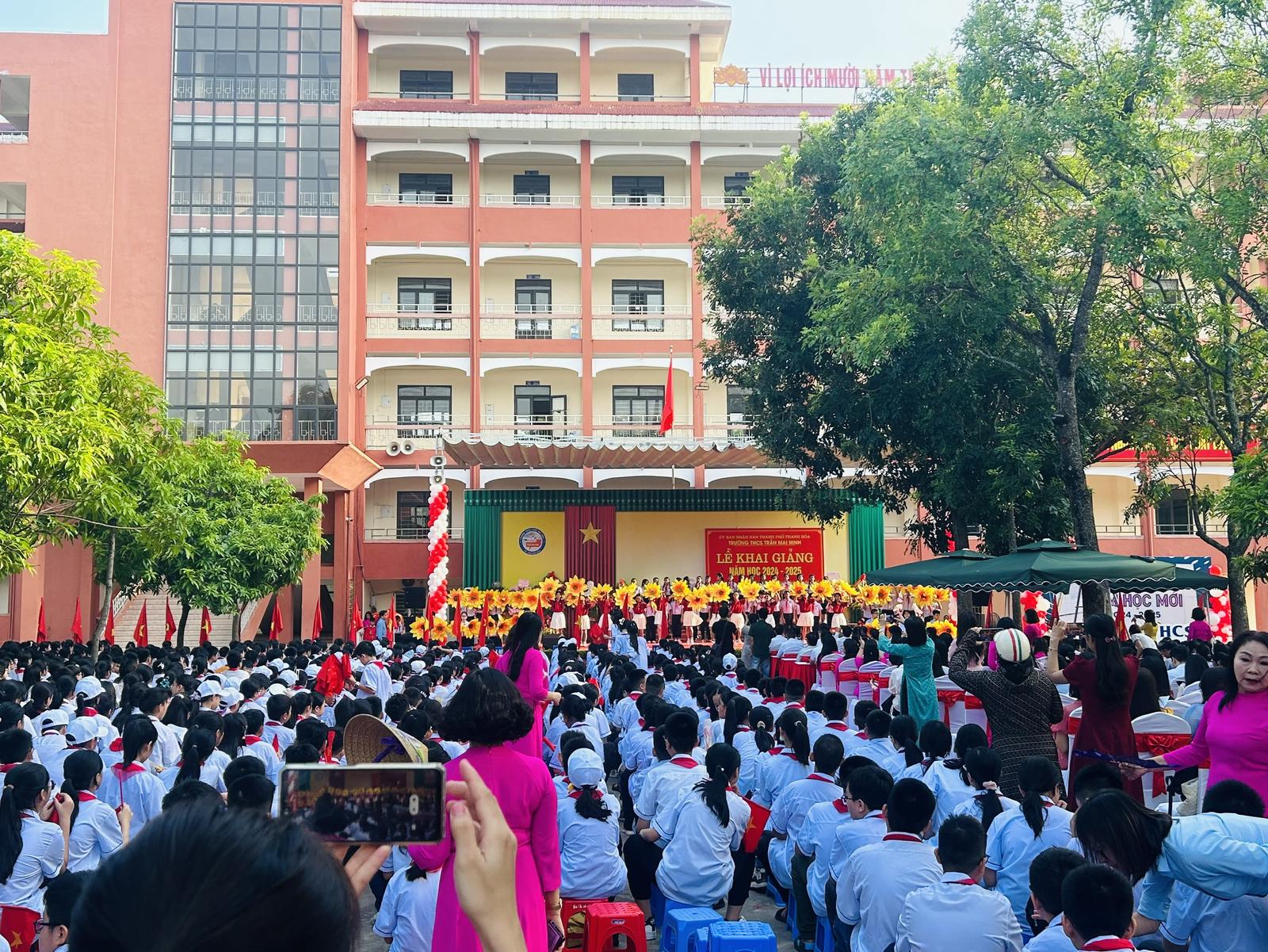 Trường THCS Trần Mai Ninh, thành phố Thanh Hoá khai giảng năm học mới. Ảnh: Hương Trà