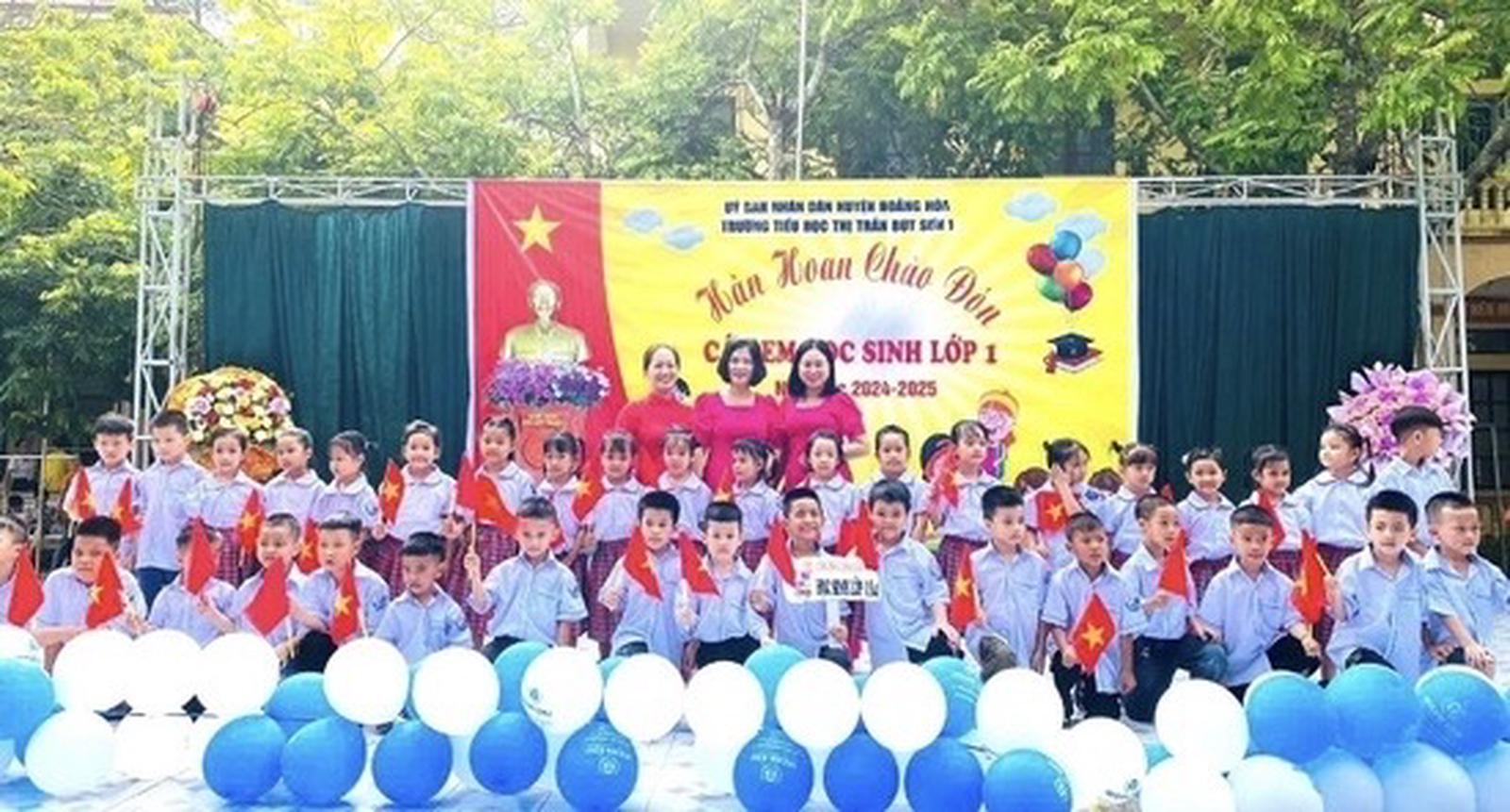 Ngày tựu trường của học sinh Trường Tiểu học thị trấn Bút Sơn 1, huyện Hoằng Hoá. Ảnh: HT