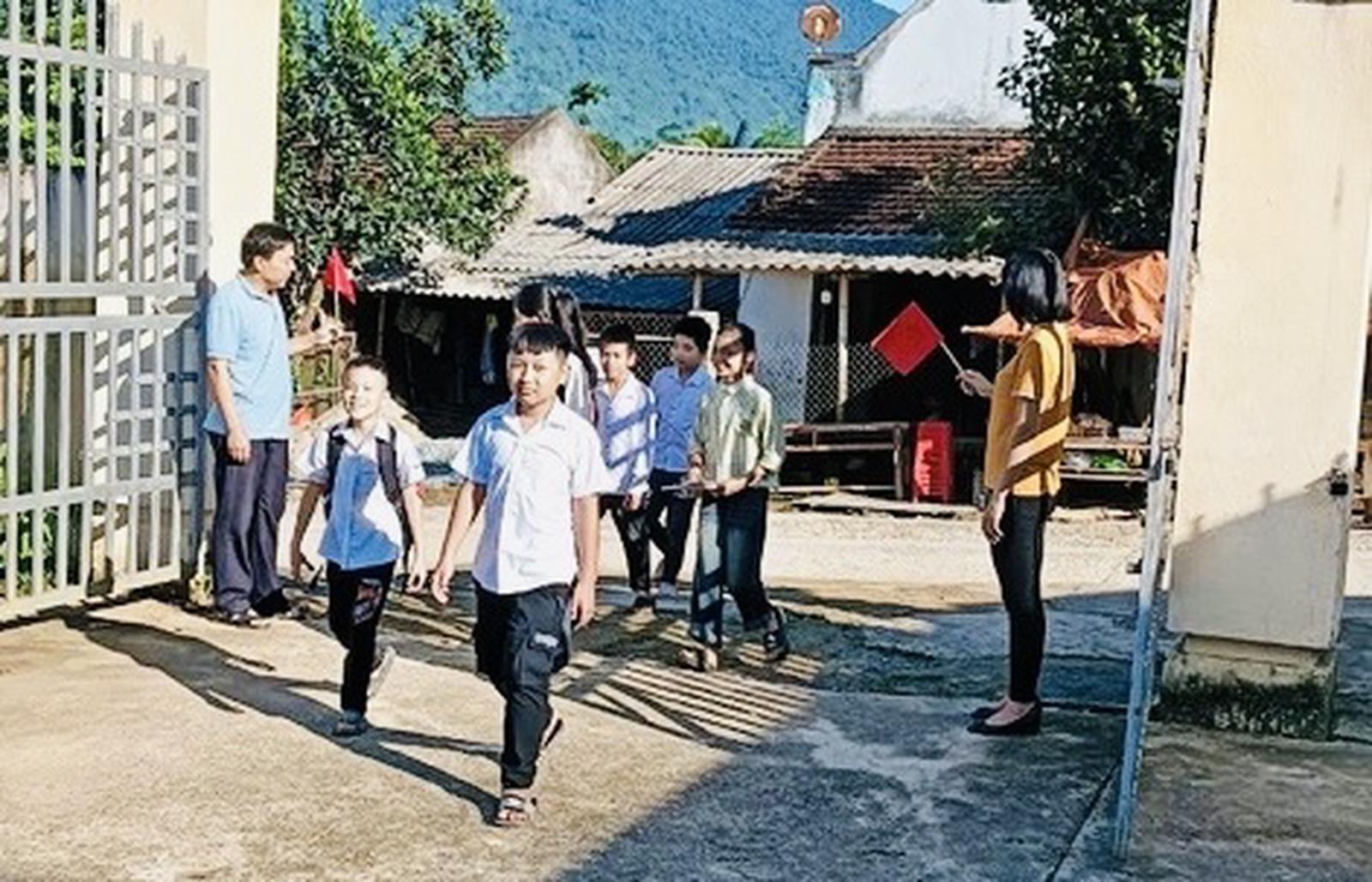 Học sinh Trường THCS Giao Thiện, xã Giao Thiện, huyện Lang Chánh tựu trường. Ảnh: HT