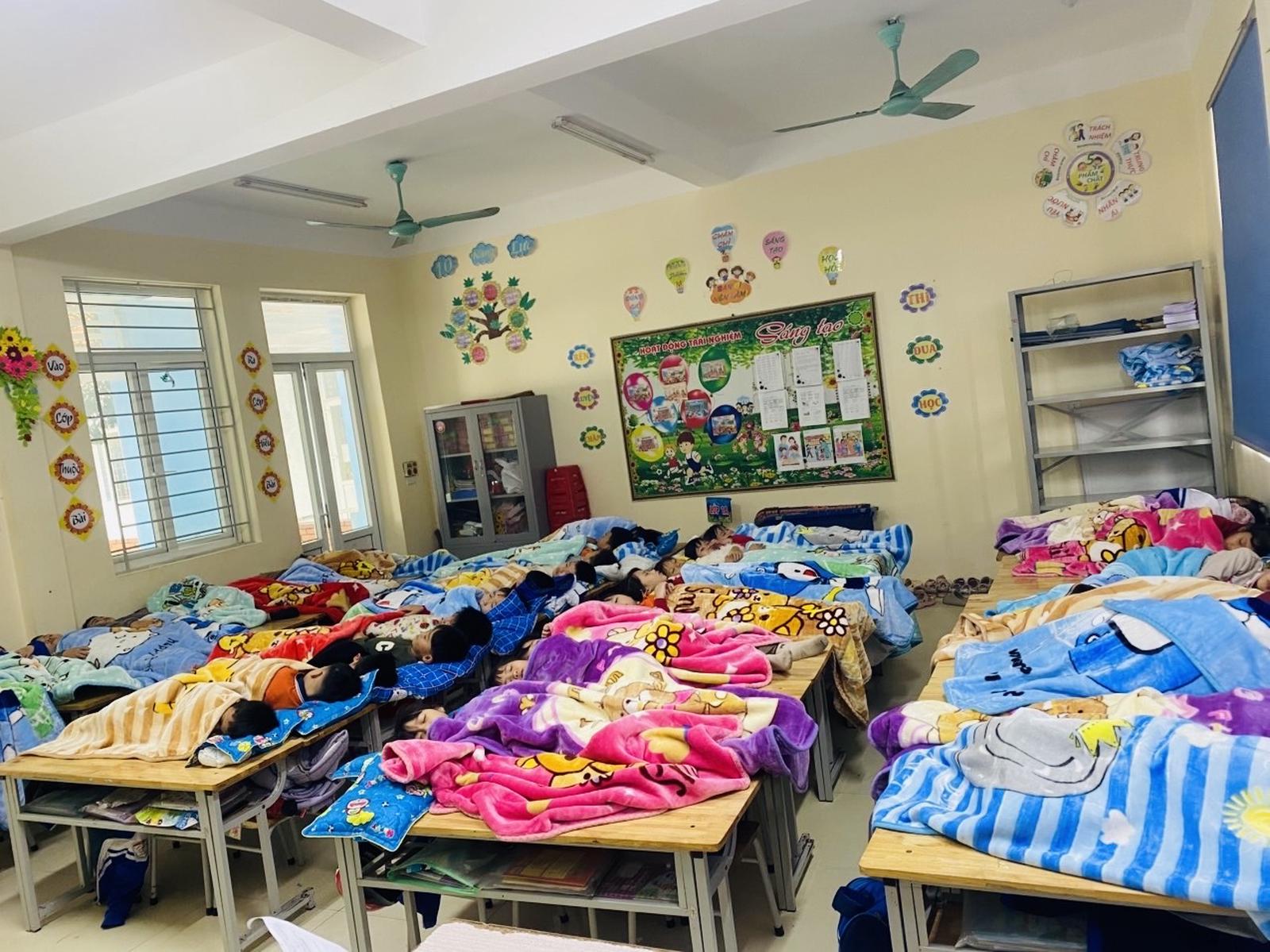 Giờ ngủ trưa của lớp học bán trú ngày 7/1, tại Trường Tiểu học Hoằng Thanh, tỉnh Thanh Hoá. Ảnh: Hương Trà