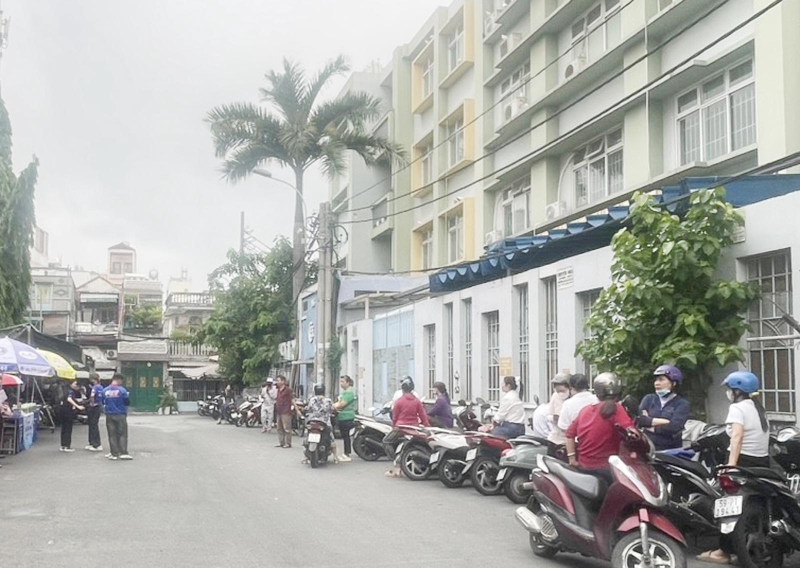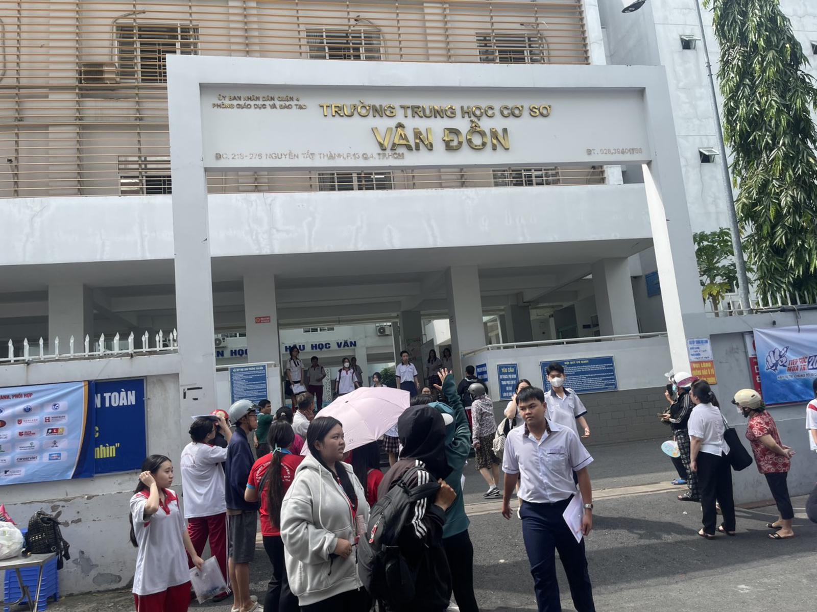 Phụ huynh đưa đón thí sinh tại điểm thi Trường THCS Vân Đồn (Quận 4). Ảnh: Thu Huyền