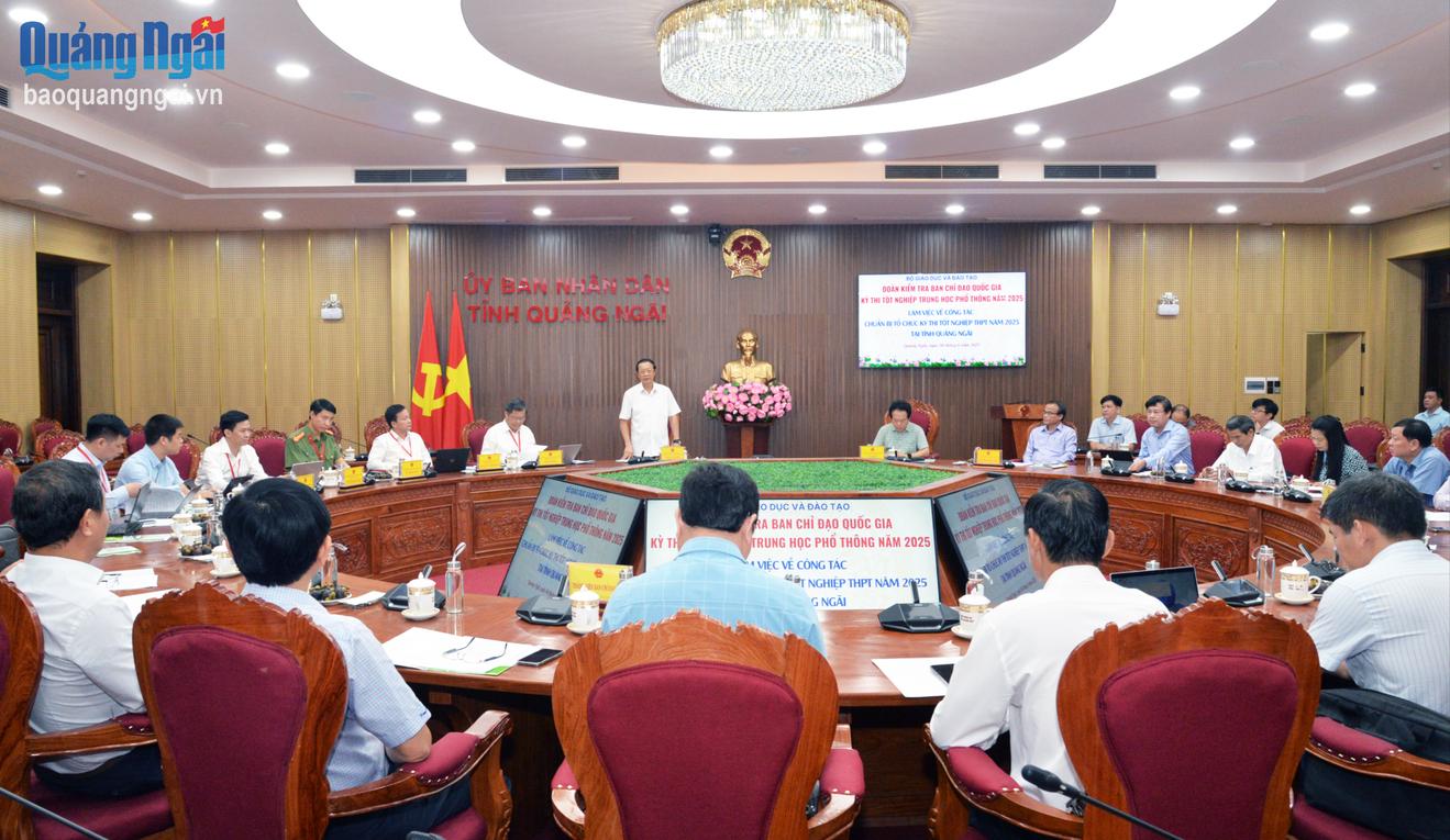 Kết luận buổi làm việc, Thứ trưởng Bộ GD&ĐT Phạm Ngọc Thưởng biểu dương sự chủ động, trách nhiệm và nỗ lực của tỉnh Quảng Ngãi trong công tác chuẩn bị kỳ thi. Tuy nhiên, ông nhấn mạnh, trong thời gian còn lại, tỉnh cần tiếp tục chỉ đạo quyết liệt, sâu sát, toàn diện và kịp thời để kỳ thi diễn ra nghiêm túc, an toàn, đúng quy chế.