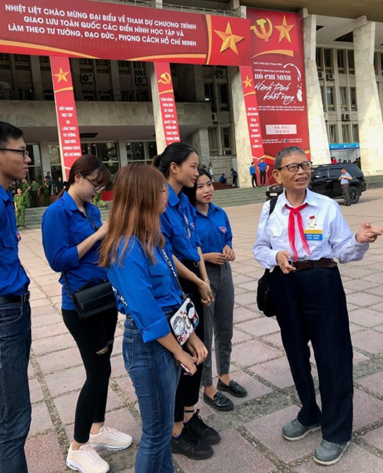 Thầy Nguyễn Đức Thìn vẫn mang nguồn cảm hứng về “Nghìn việc tốt" đến các thế hệ thanh niên, thiếu niên. Ảnh: Nam Dũng