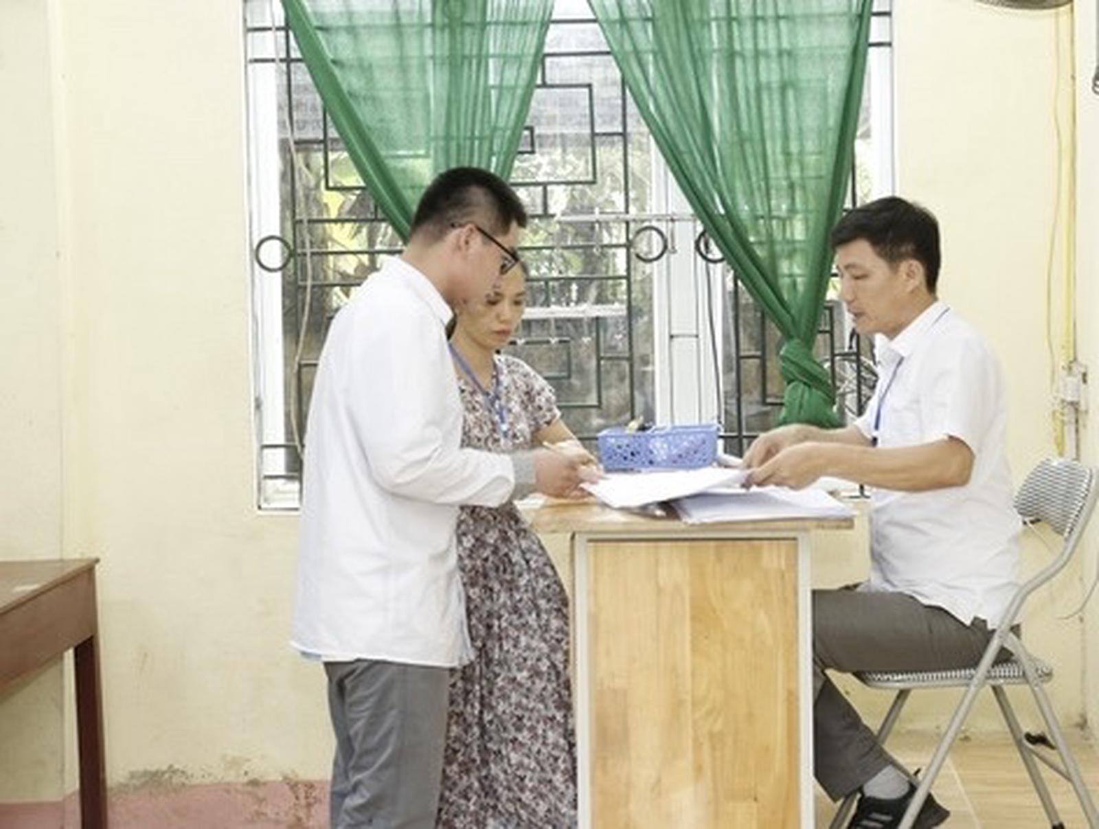 Thi sinh nộp bài sau khi đã hoàn thành bài thi. Ảnh: HT