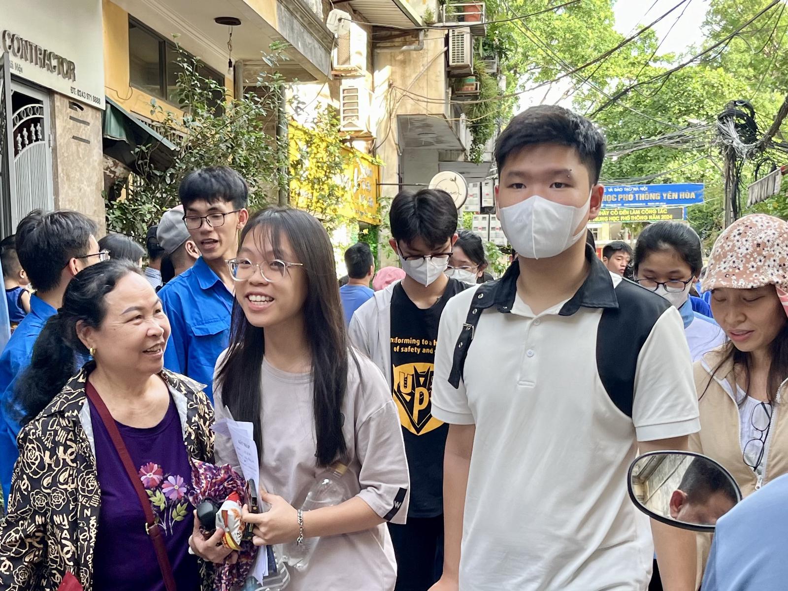 “Em thấy vui vì đề thi Ngữ văn sáng nay “trúng tủ”. Tuy nhiên, phần đầu bài Đất nước khá dài, nếu học kỹ thì vẫn sẽ làm được, nhưng khi viết em thấy hơi gấp và thiếu thời gian”, một bạn thí sinh tại điểm thi Trường THPT Yên Hòa cho biết.