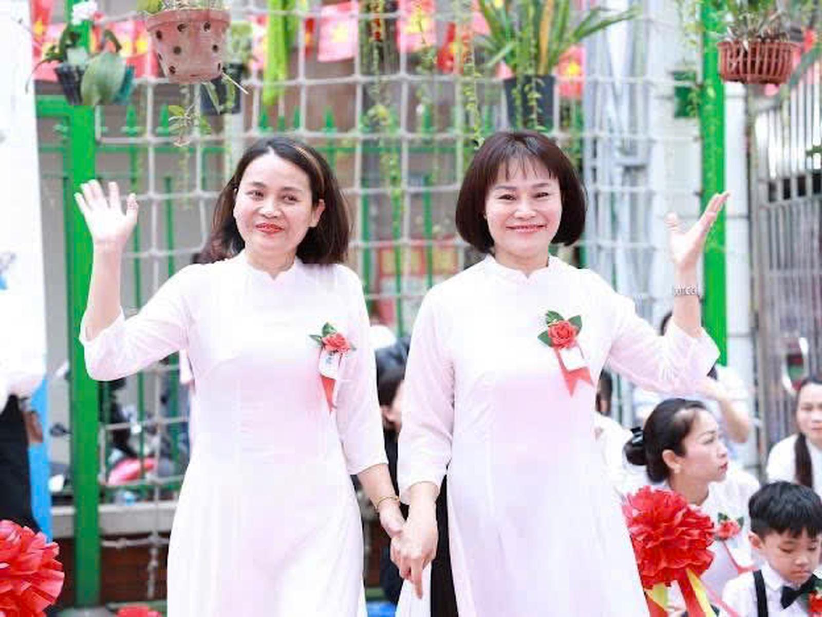 Cô giáo Giao Linh (bên trái), giáo viên Trường Mẫu giáo số 9, phường Ngọc Hà, Hà Nội. Ảnh: NVCC