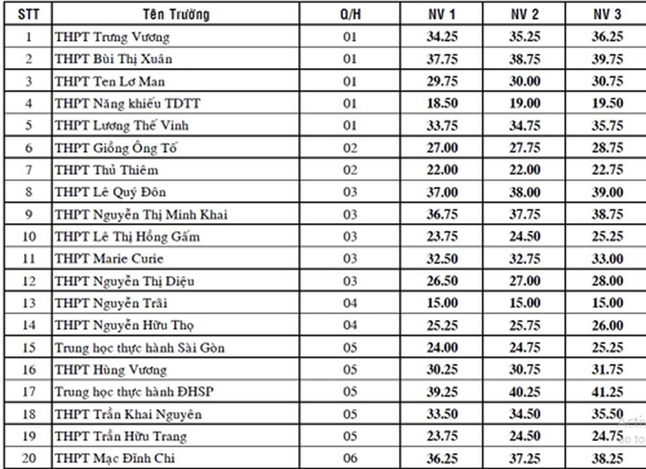Ở mỗi trường, điểm chuẩn nguyện vọng 2 cao hơn điểm chuẩn nguyện vọng 1 và nguyện vọng 3 cao hơn nguyện vọng 2 không quá 1 điểm.