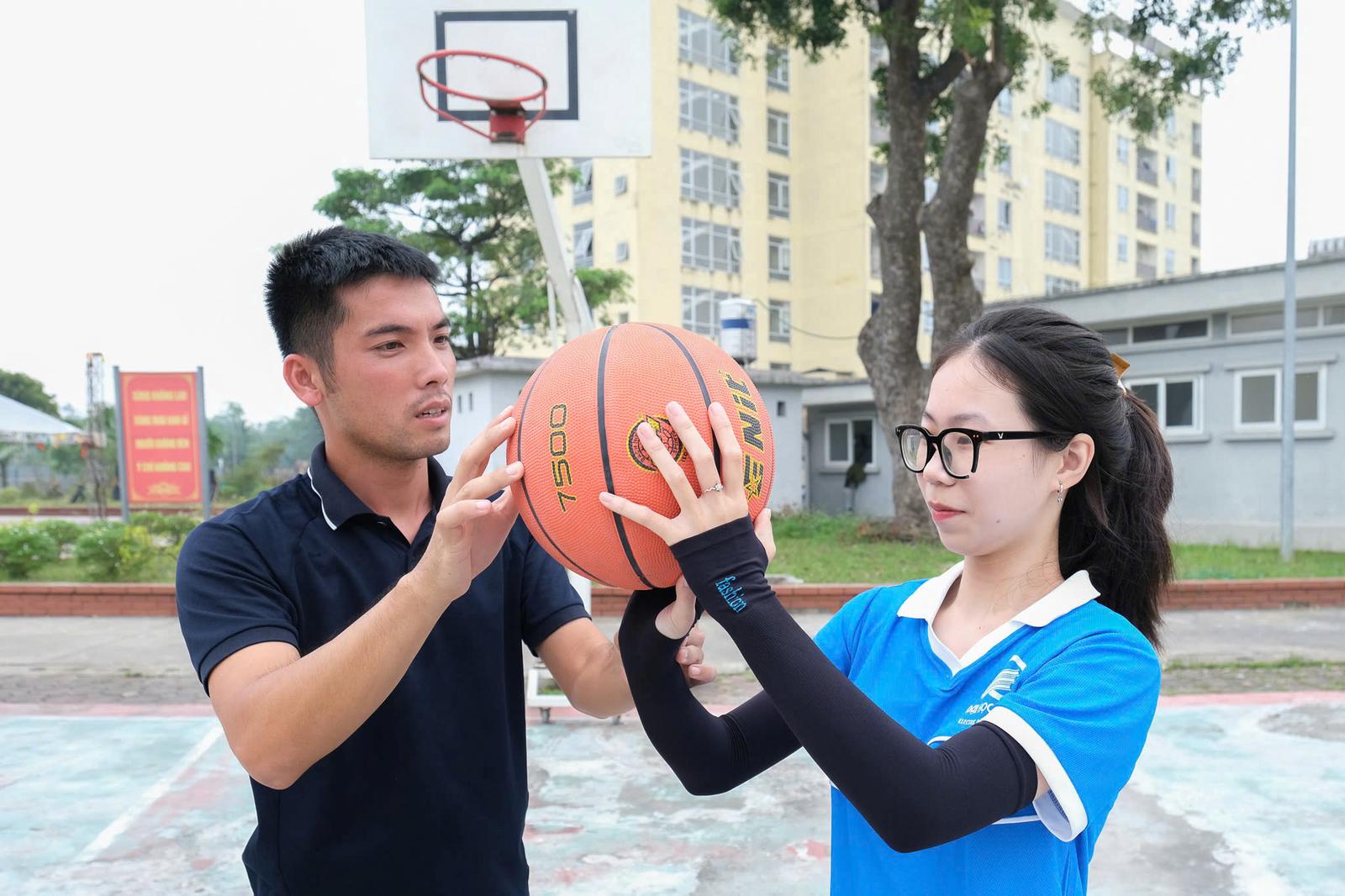 Sinh viên Trường Đại học Điện lực được hướng dẫn tập thể thao tại Trung tâm Giáo dục thể chất - Quốc phòng an ninh. Ảnh: ĐHĐL