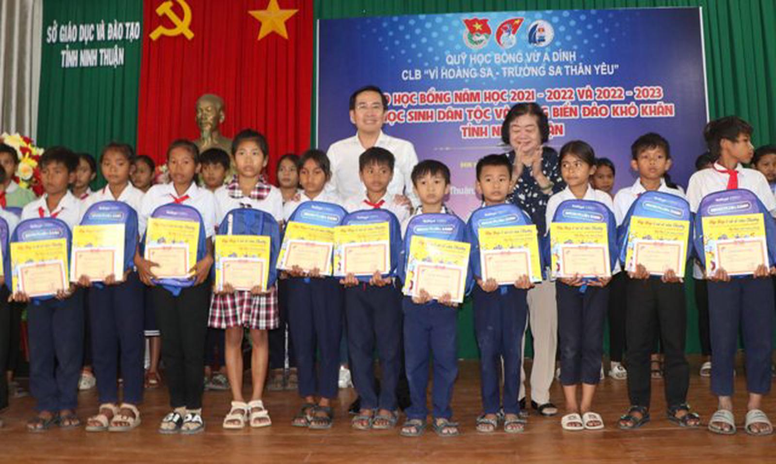 Ông Lê Huyền, Phó Chủ tịch UBND tỉnh Ninh Thuận bày tỏ: “Được sự quan tâm Quỹ Học bổng Vừ A Dính, và Câu lạc bộ “Vì Hoàng Sa - Trường Sa thân yêu” các em học sinh DTTS, con của ngư dân có hoàn cảnh khó khăn có cơ hội, điều kiện được tiếp bước đến trường.