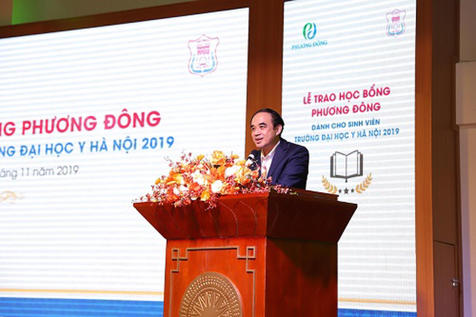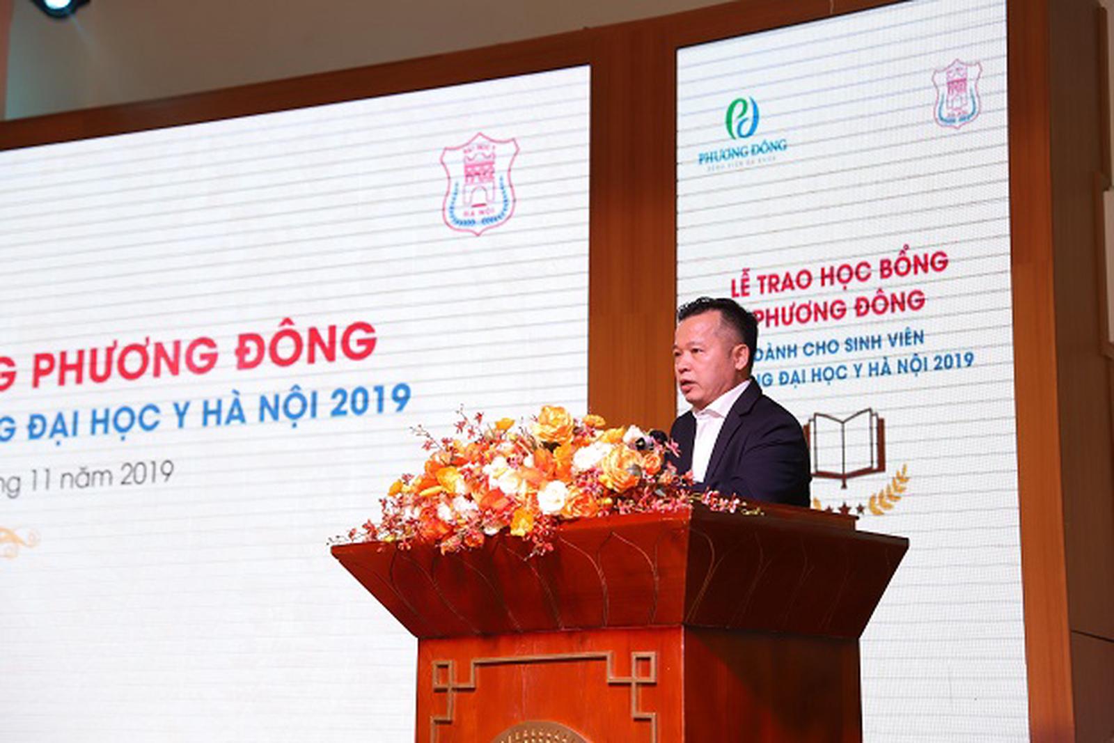 Phát biểu tại buổi lễ, ông Nguyễn Thanh Việt - Chủ tịch HĐQT Công ty Intracom, kiêm Chủ tịch HĐTV Công ty TNHH Tổ hợp Y tế Phương Đông chúc mừng các bạn sinh viên được nhận học bổng và hy vọng các bạn sẽ không ngừng nỗ lực, phấn đấu để trở thành những bác sỹ tài hoa trong tương lai. Ông cũng chia sẻ một số dự định sắp tới nhằm tiếp tục chắp cánh cho ước mơ của nhiều sinh viên hơn nữa của trường Đại học Y Hà Nội.