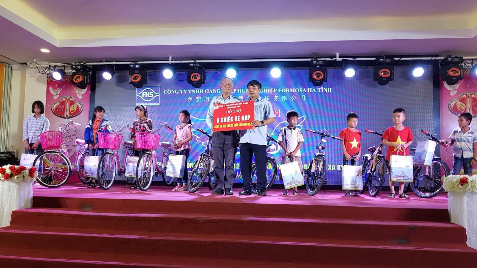 Nhân dịp này Công ty Formosa Hà Tĩnh còn kết hợp với Hội bảo trợ Người khuyết tật - Trẻ mồ côi và nạn nhân chất độc da cam tiến hành trao tặng 8 chiếc xe đạp cho 8 em nhỏ có hoàn cảnh khó khăn và hỗ trợ kinh phí học tập cho 4 em học sinh nghèo có hoàn cảnh gia đình đặc biệt khó khăn của Trường THPT Lê Quảng Chí.
