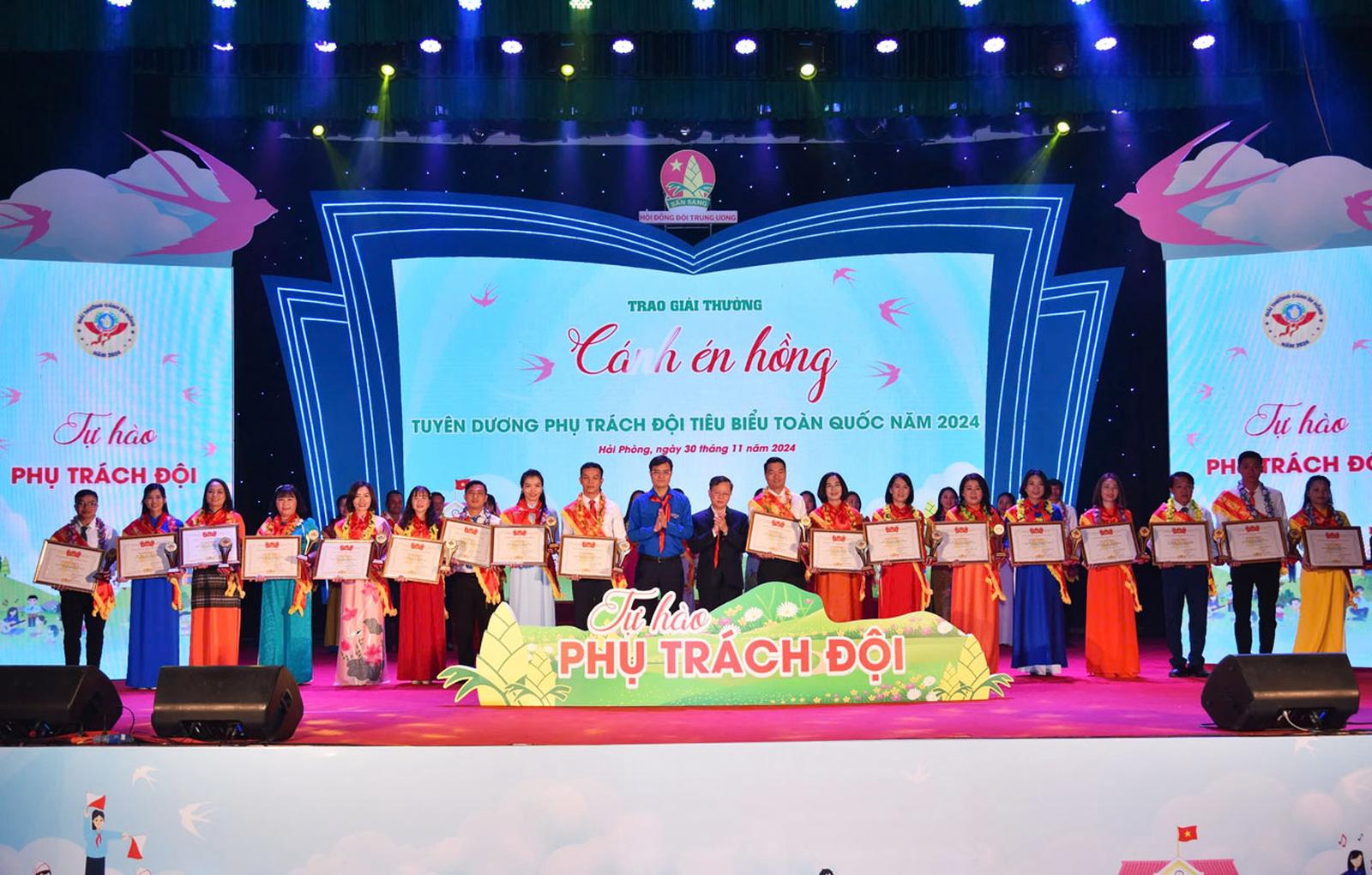Trao Giải thưởng “Cánh én hồng” năm 2024 cho các giáo viên làm Tổng phụ trách Đội xuất sắc. Ảnh: KT