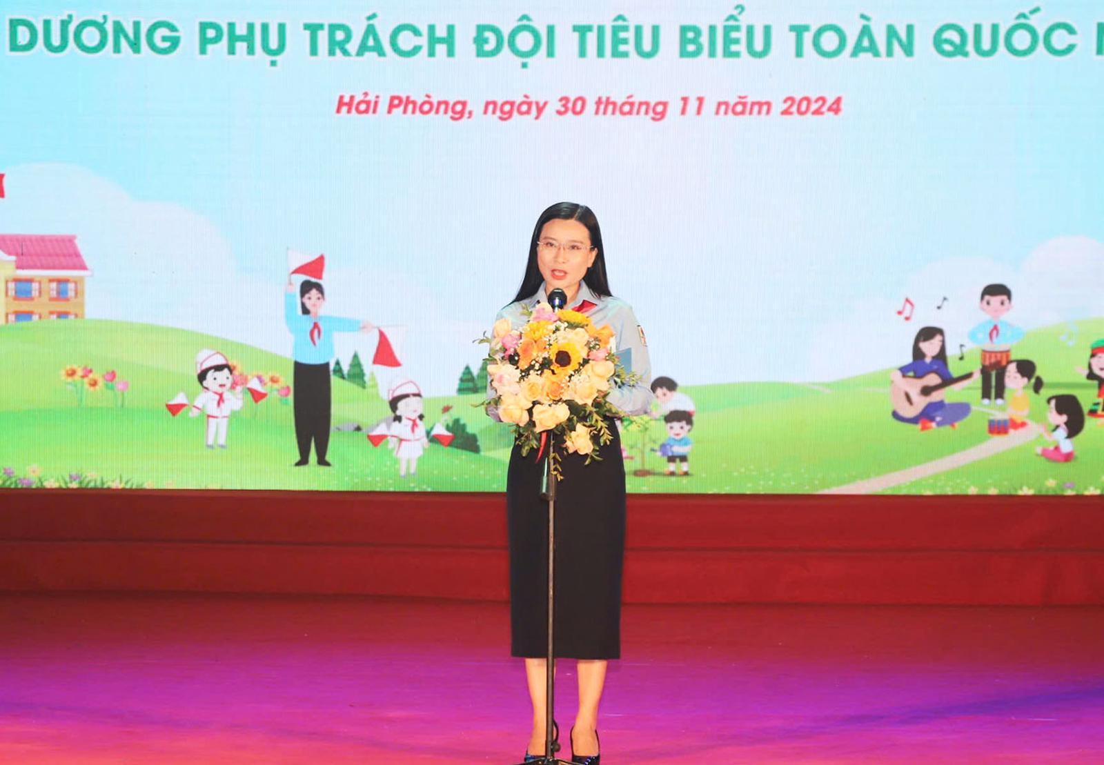 Bà Nguyễn Phạm Duy Trang, Bí thư Trung ương Đoàn, Chủ tịch Hội đồng Đội Trung ương phát biểu. Ảnh: KT