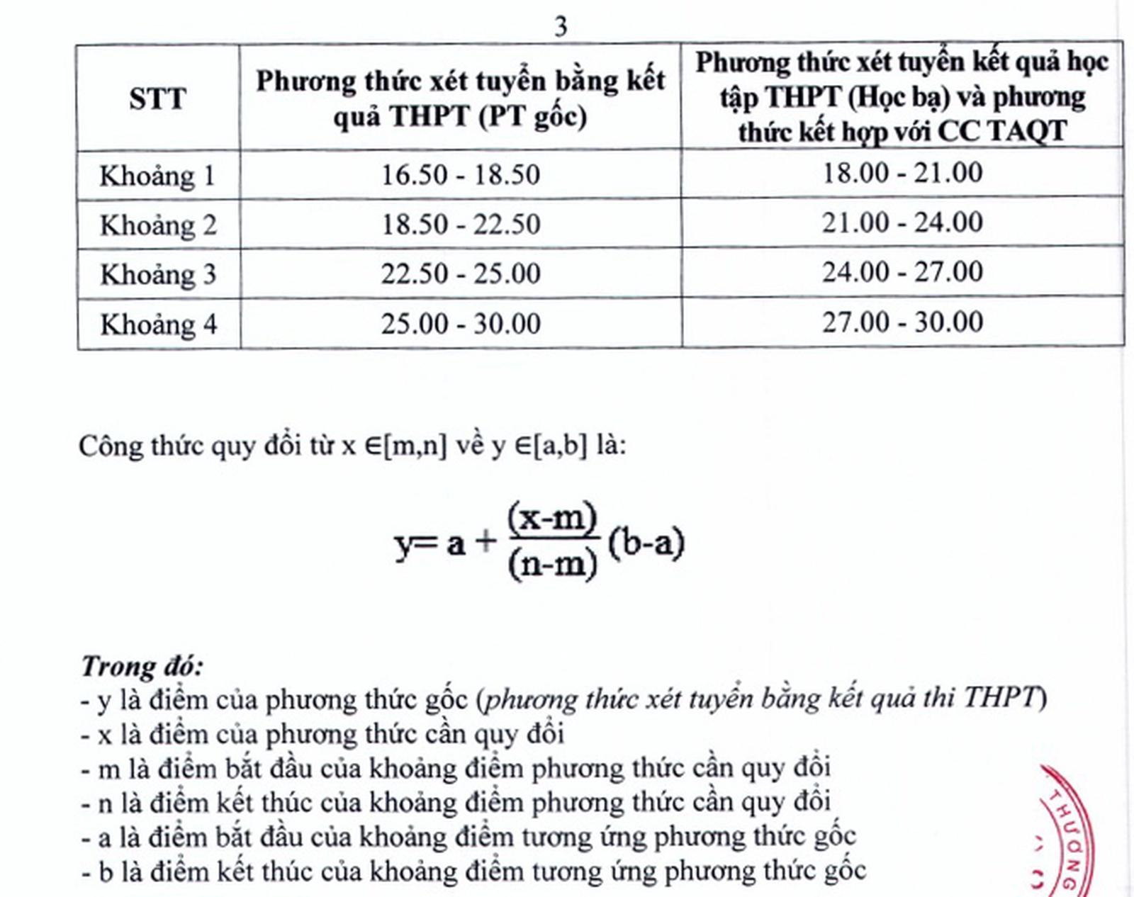 Theo đó, ngưỡng đảm bảo chất lượng (điểm sàn) áp dụng cho các phương thức xét tuyển (đã bao gồm điểm ưu tiên đối tượng và khu vực nếu có). Cụ thể: Phương thức xét tuyển bằng kết quả thi THPT; phương thức xét tuyển bằng kết quả học tập THPT (học bạ) và phương thức xét tuyển kết hợp với chứng chỉ tiếng Anh quốc tế.