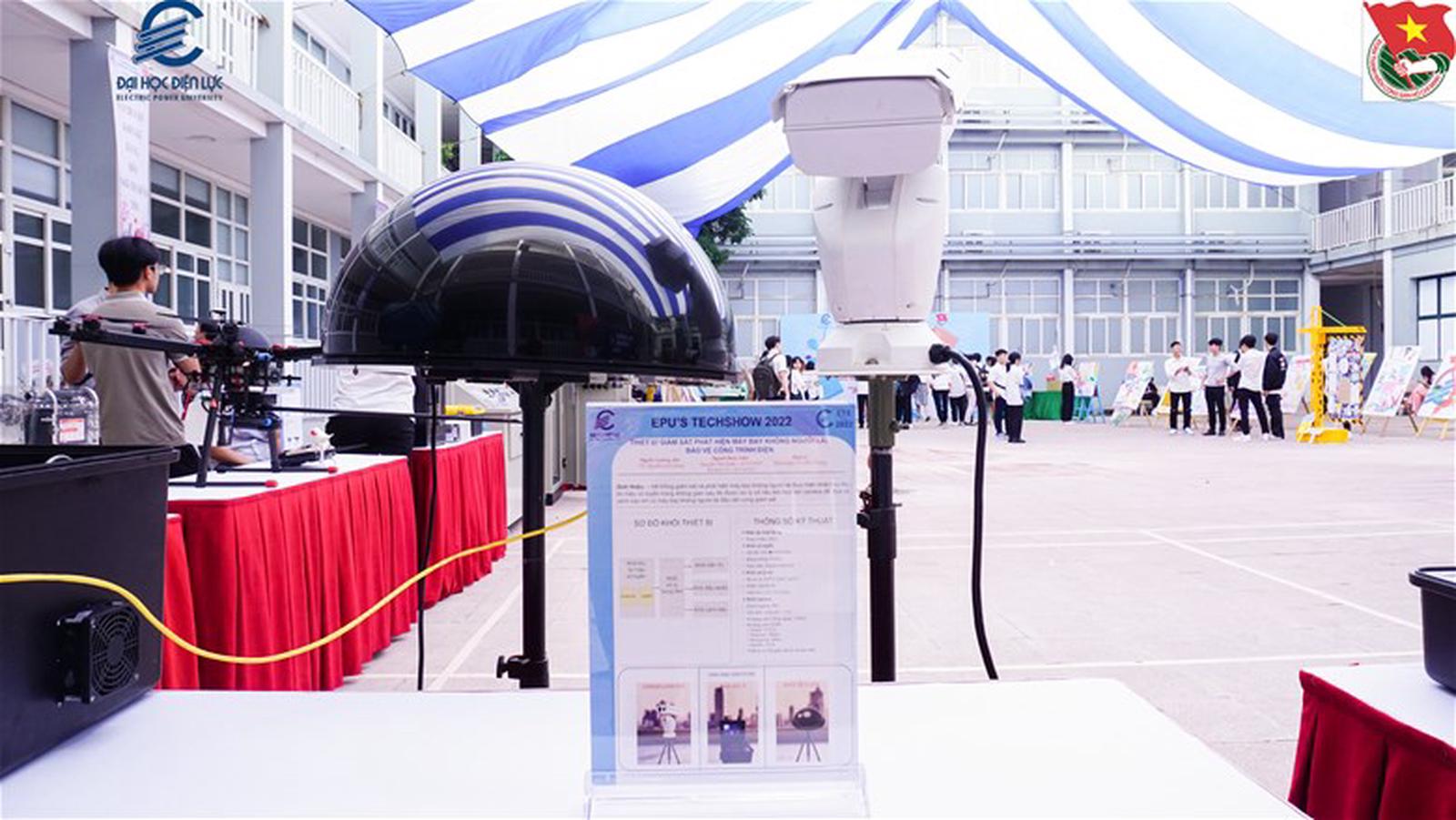 Mô hình "Thiết bị giám sát phát hiện máy bay không người lái bảo vệ công trình điện" tại triển lãm “EPU’S Campus Techshow 2022". Ảnh: ĐHĐL
