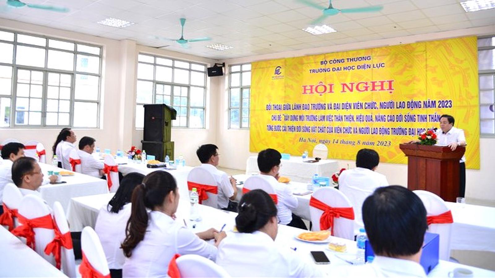 Chiều 14/8, Trường Đại học Điện lực tổ chức đối thoại giữa Lãnh đạo nhà trường và đại diện viên chức, người lao động năm học 2023 - 2024.