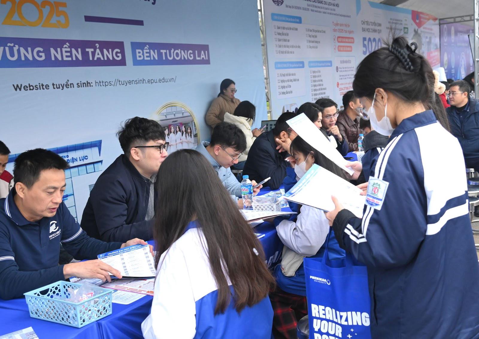 Ghi nhận tại gian hàng của EPU, đội ngũ giảng viên và sinh viên nhà trường đã tư vấn, giải đáp thắc mắc về những điểm mới trong Quy chế tuyển sinh 2025, phương thức xét tuyển, chương trình học bổng hấp dẫn, cũng như cơ hội nghề nghiệp sau khi tốt nghiệp. Đây là cơ hội quý báu giúp học sinh lớp 12 có cái nhìn rõ ràng hơn về ngành học, từ đó lựa chọn ngôi trường phù hợp với năng lực và đam mê của mình.