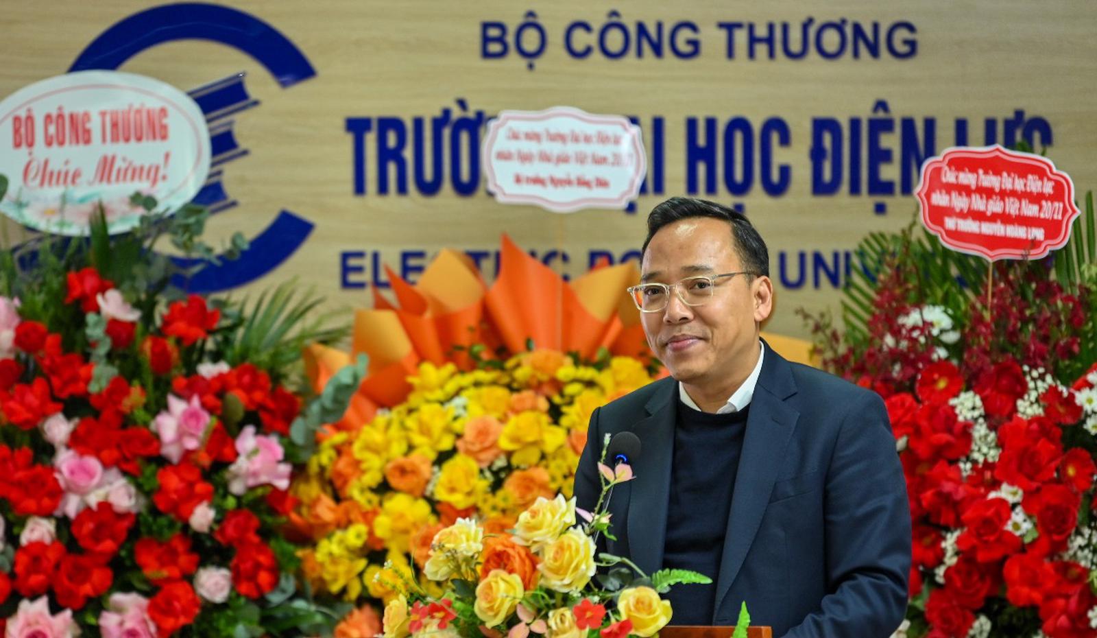 Thay mặt Lãnh đạo Bộ Công Thương, Thứ trưởng Nguyễn Hoàng Long gửi lời chúc mừng nồng nhiệt tới các thế hệ thầy cô giáo, cán bộ viên chức và sinh viên nhà trường nhân dịp tôn vinh những người làm công tác "trồng người" cao quý.