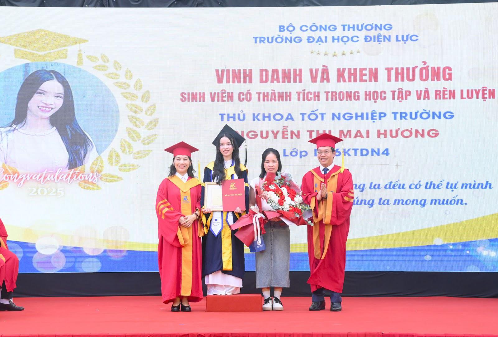 Mai Hương cũng chia sẻ với các bạn đồng môn về 4 năm đại học đầy kỷ niệm, những nỗ lực không ngừng để hoàn thiện bản thân, và niềm tự hào khi không bỏ cuộc, dám ước mơ và cố gắng hết mình. Cô tin tưởng rằng, với nền tảng được vun đắp từ mái trường Đại học Điện lực mến yêu, mỗi tân khoa sẽ tiếp tục tỏa sáng theo cách riêng của mình - tử tế hơn, mạnh mẽ hơn, bản lĩnh hơn.