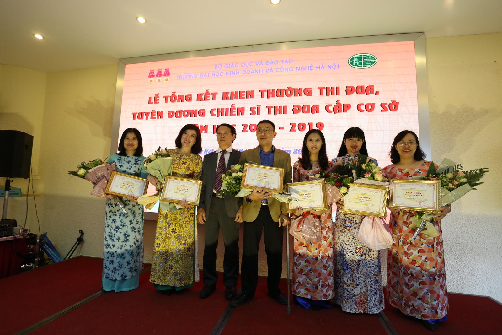 Tại buổi Lễ, Ông Vũ Kim Huyền, Phó Trưởng phòng Tổ chức - Cán bộ đã báo cáo tổng kết thi đua năm học 2018 - 2019. Cụ thể, Hội đồng thi đua khen thưởng nhà trường đã tiến hành xét khen thưởng thi đua tập thể và cá nhân năm học 2018 - 2019 với kết quả: Số đơn vị, tập thể được khen thưởng là 56, số cá nhân được khen thưởng 958 người (chiếm 82,94%). Trong đó, thưởng loại I là 134 người (11,61%); thưởng loại II là 824 người (71,34%). Nhìn chung, đối với xét thưởng cá nhân và tập thể, các đơn vị thực hiện nghiêm túc, đúng thời hạn quy định. Về việc xét và xếp loại thi đua của lãnh đạo các đơn vị, các lãnh đạo đơn vị đã thực hiện nghiêm túc. Năm học 2018 - 2019 toàn trường có 61 người đăng kí phấn đấu trở thành chiến sĩ thi đua năm học 2018 - 2019, tỉ lệ tổng kết phấn đấu trở thành Chiến sĩ thi đua (tăng so với năm học trước là 41,8%), trong đó Cán bộ quản lý có 28 người, Giảng viên có 33 người. Tổng số người đạt loại 1 có 31 người đã được các đơn vị bình xét ở đơn vị đạt trên 80% số phiếu đồng ý đề nghị xét danh hiệu là Chiến sĩ thi đua. Đây là một tín hiệu đáng mừng vì phong trào này đã được giảng viên hưởng ứng tích cực, cho thấy lãnh đạo một số đơn vị đã động viên các giảng viên tích cực phấn đấu thi đua.