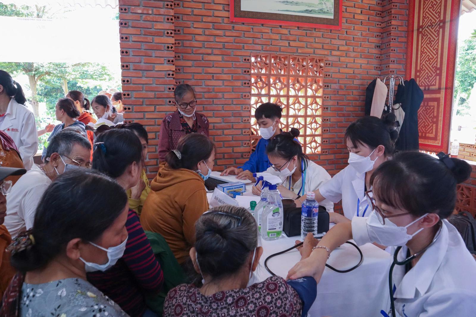 Sinh viên Trường Đại học Y Dược Buôn Ma Thuột tổ chức hoạt động khám bệnh và phát thuốc miễn phí cho người dân. Ảnh: Như Thảo