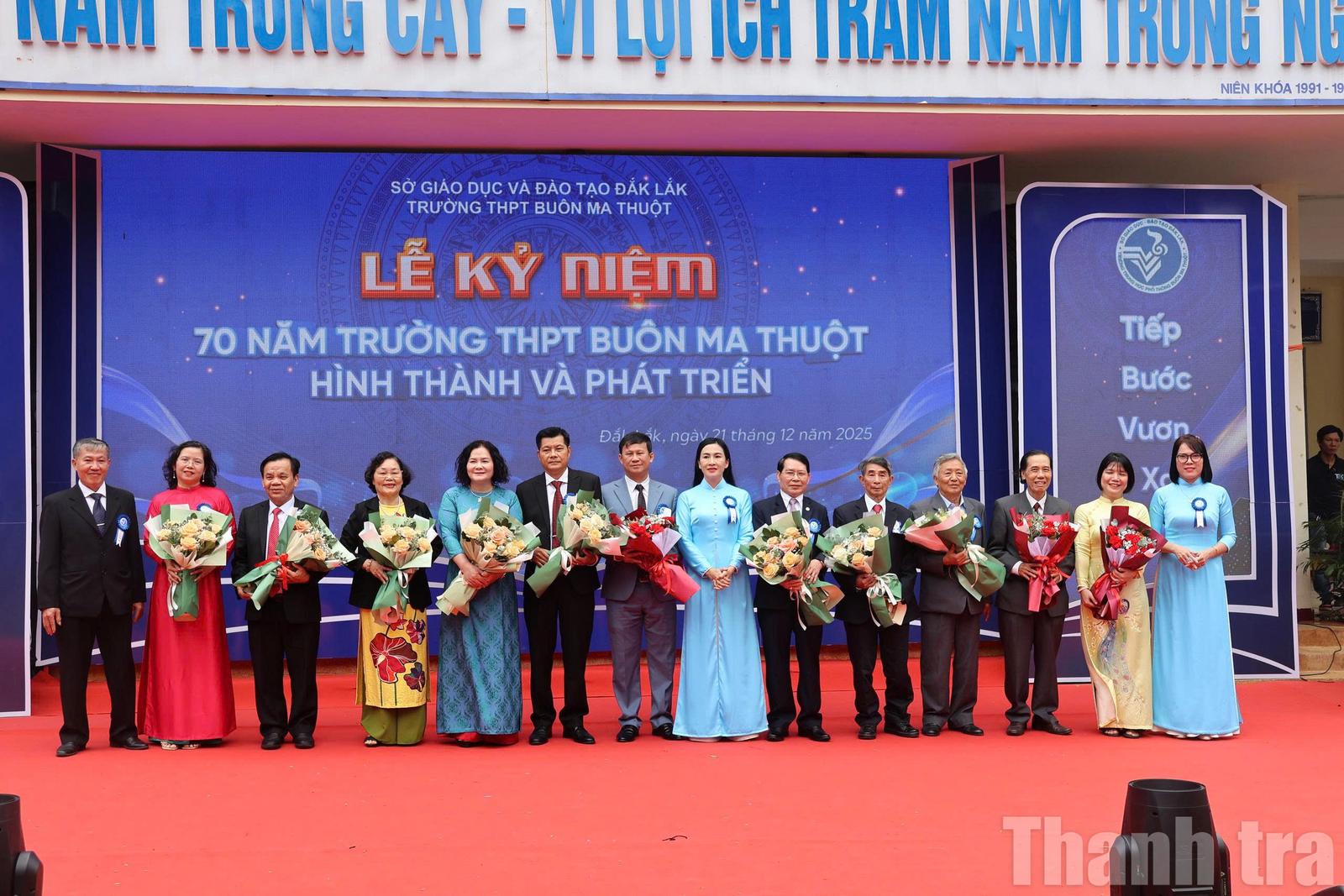 Nhân dịp này, Sở Giáo dục và Đào tạo tỉnh Đắk Lắk đã tặng giấy khen cho 10 cá nhân là cựu giáo viên, giáo viên Trường THPT Buôn Ma Thuột vì có thành tích xuất sắc trong sự nghiệp giáo dục và công tác phát triển nhà trường.