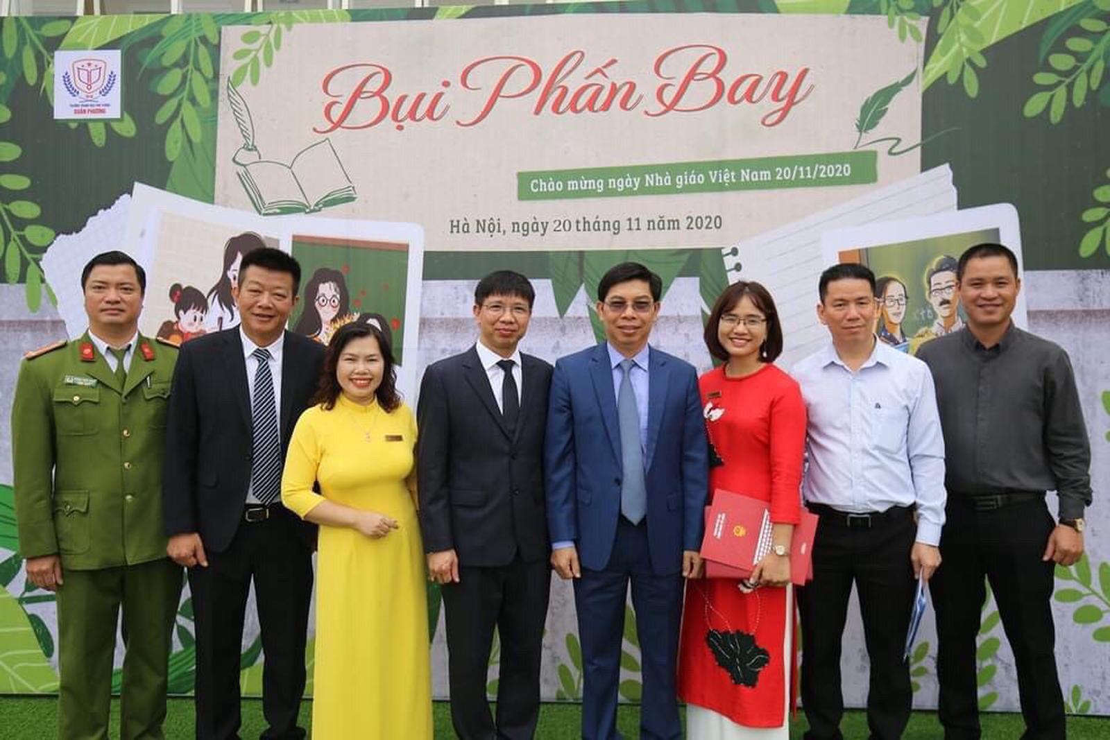 Đội ngũ Ban Giám hiệu tâm huyết, tận tâm với Nhà trường và không ngừng đổi mới, sáng tạo trong quản lý. (Ảnh: Ban Giám hiệu chụp cùng các đồng chí lãnh đạo quận Nam Từ Liêm và các đồng chí lãnh đạo phường Xuân Phương).