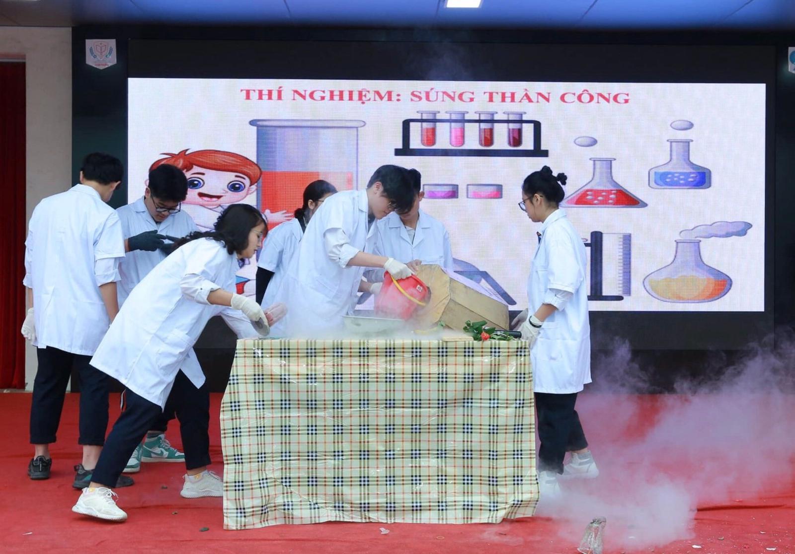 Hình ảnh học sinh thực hiện thí nghiệm trong ngày hội STEM
