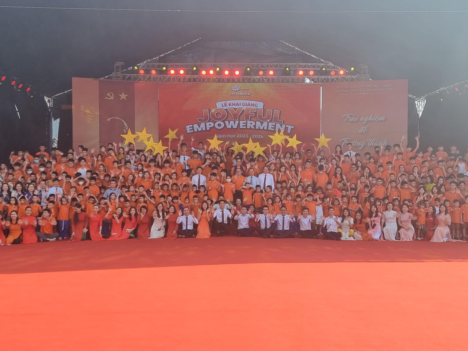 Chương trình khai giảng năm học mới của FPT schools Bắc Giang với chủ đề Joyful Empowerment – Khai phá tiềm năng của học sinh đã diễn ra trong không khí tưng bừng và mang đậm yếu tố công nghệ đặc trưng của FPT.