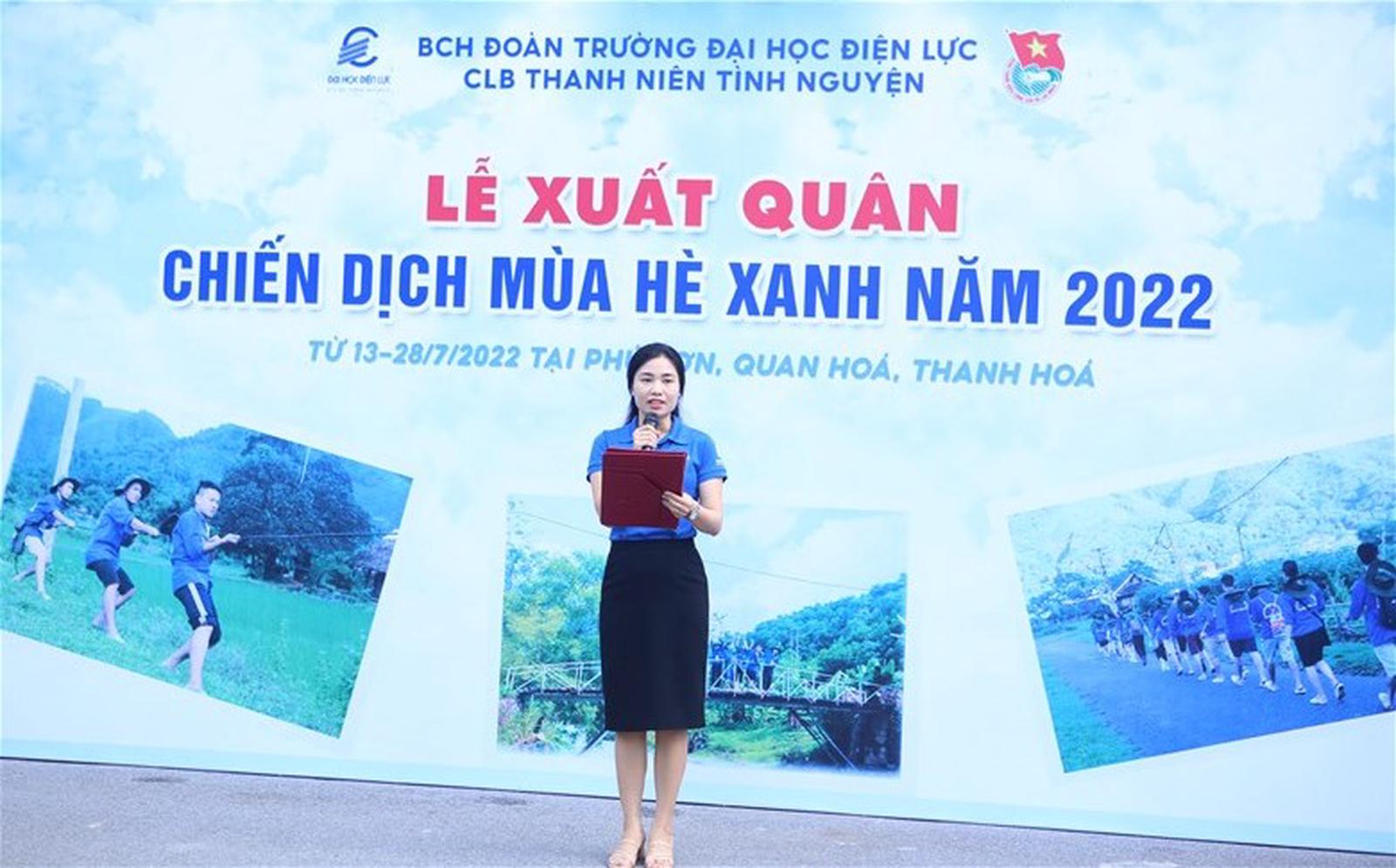 Bí thư Đoàn trường Nguyễn Vân Anh phát động chiến dịch Mùa hè xanh 2022. Ảnh: ĐHĐL