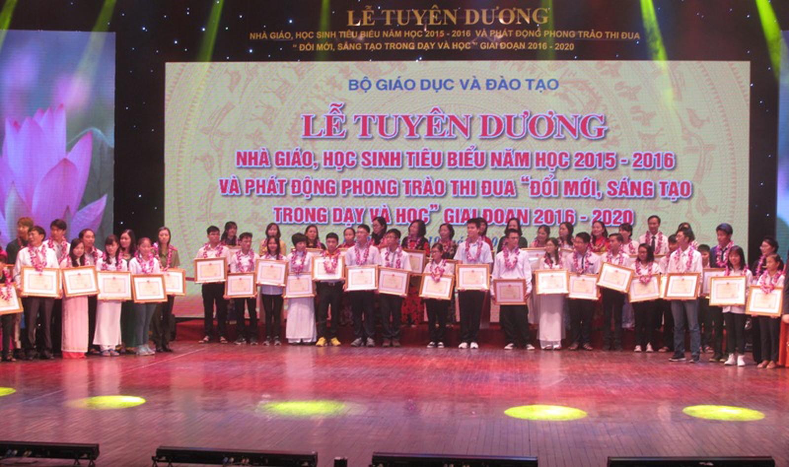 252 giáo viên, học sinh tiêu biểu năm học 2015 - 2016 được tuyên dương. Ảnh: TTH
