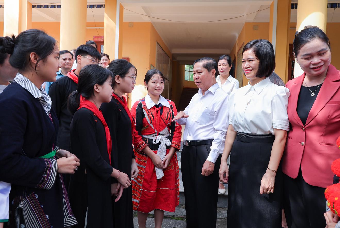 Thứ trưởng Bộ GDĐT Lê Tấn Dũng trò chuyện, chia sẻ cùng học sinh Trường Phổ thông Dân tộc Nội trú THCS&THPT Chiêm Hóa. Ảnh: Trần Hiệp