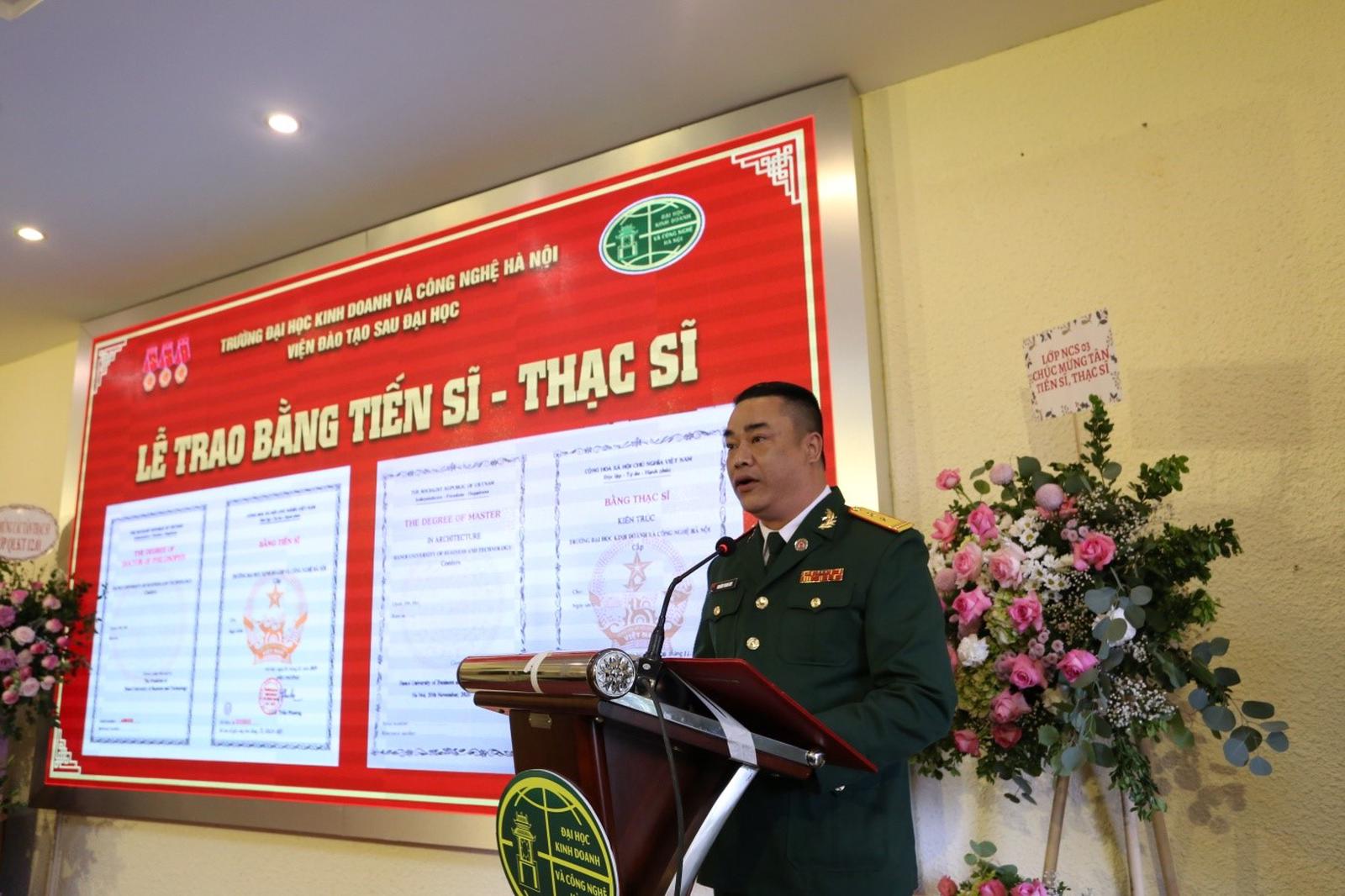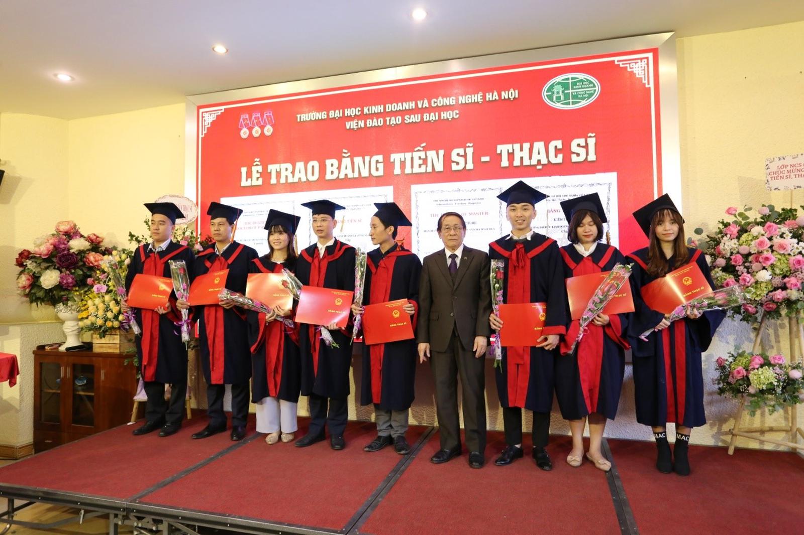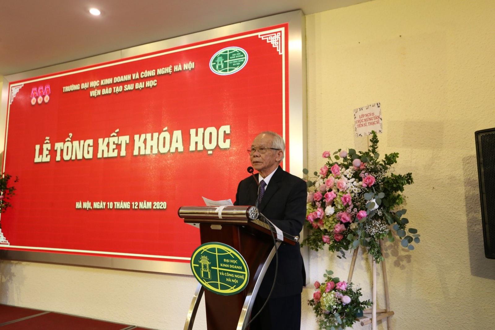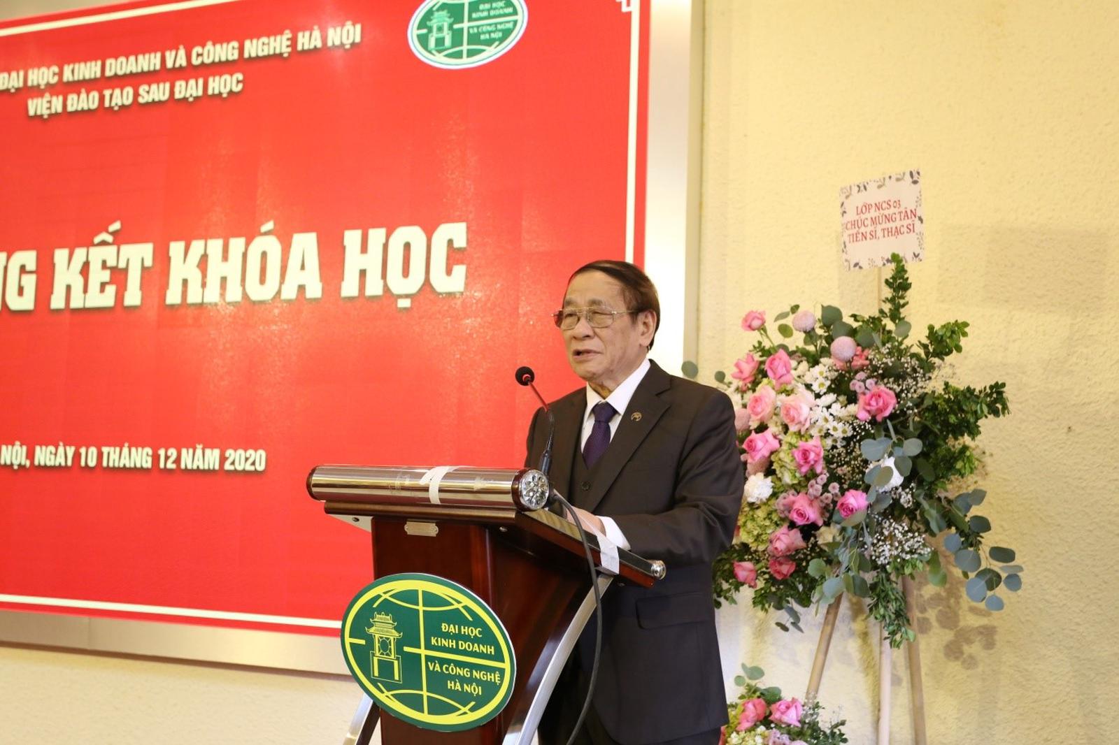 Thay mặt Ban lãnh đạo Viện Đào tạo sau đại học, GS. TSKH Vũ Huy Từ nhiệt liệt biểu dương sự cố gắng học tập tu dưỡng và chúc mừng các tân tiến sĩ, thạc sĩ. Đồng thời, GS. TSKH Vũ Huy Từ cũng khẳng định Trường Đại học Kinh doanh và Công nghệ Hà Nội tự hào là cơ sở giáo dục tuân thủ chặt chẽ các quy định đào tạo, thể hiện rõ qua chất lượng các bản luận án được hội đồng đánh giá tốt. Bên cạnh đó, để phục vụ tốt hơn cho cả người dạy và người học, Viện đào tạo sau đại học không ngừng đổi mới chương trình, nâng cao chất lượng đào tạo và đầu tư cơ sở vật chất phục vụ cho nghiên cứu, đào tạo.