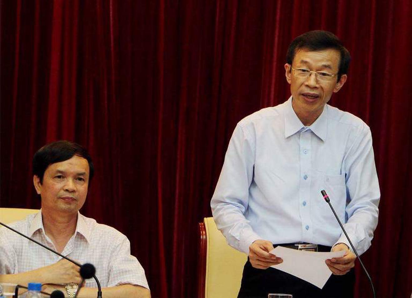 Ông Nguyễn Văn Minh, Trưởng Ban tổ chức kỳ thi, Hiệu trưởng ĐH Sư phạm Hà Nội tại buổi họp. Ảnh: TTH
