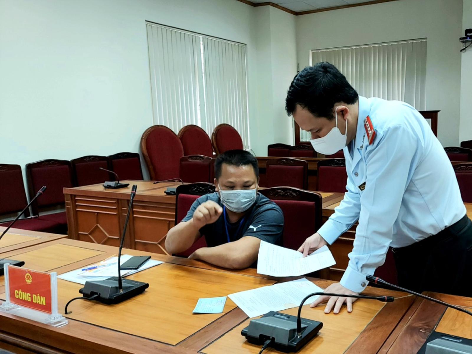 Chánh Thanh tra tỉnh Quảng Ninh Điệp Văn Chiến trao đổi với công dân liên quan đến nội dung kiến nghị tại một buổi tiếp dân định kỳ của tỉnh. Ảnh: TTTT