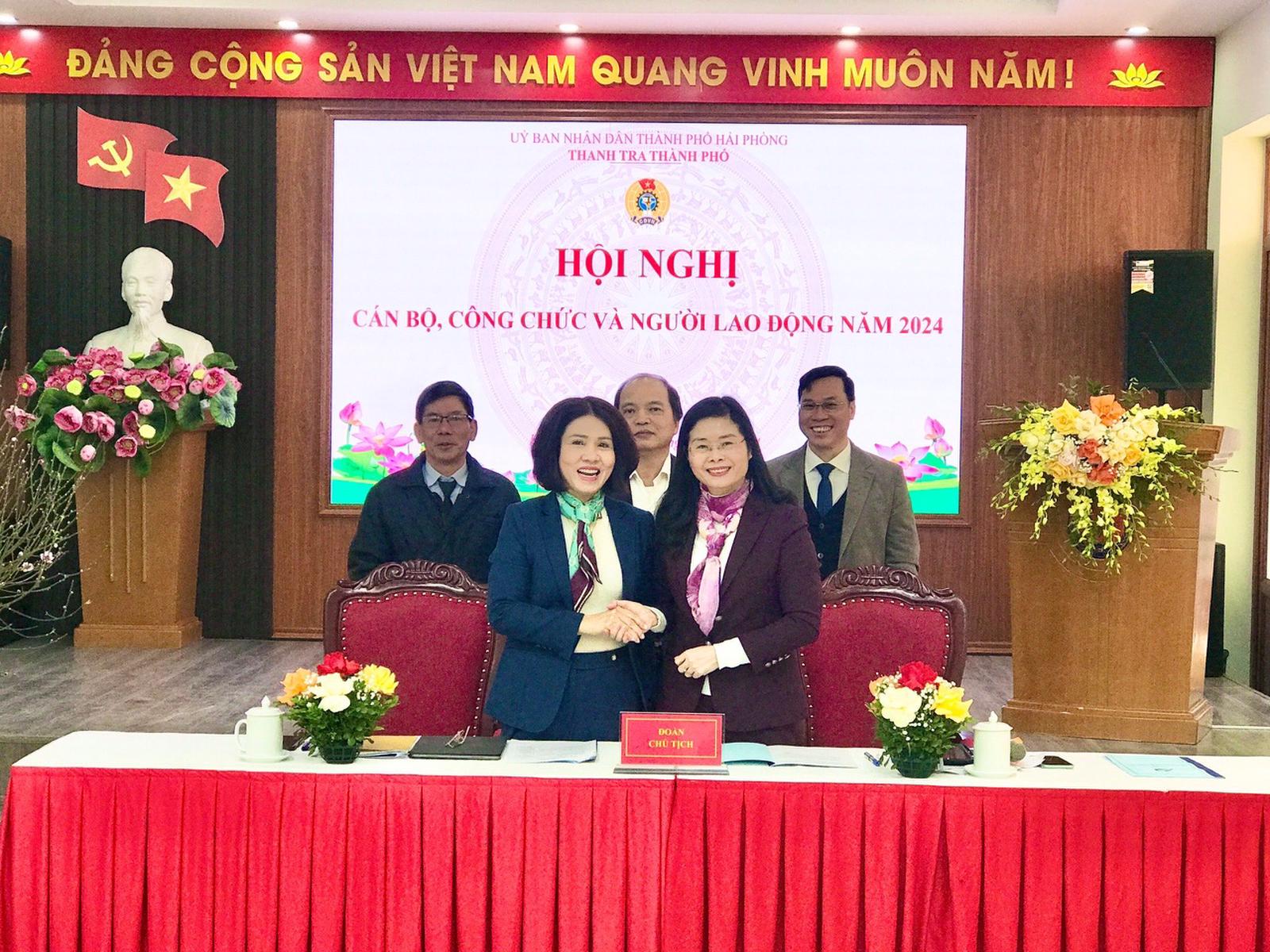 Đảng ủy Thanh tra thành phố Hải Phòng luôn quan tâm, tạo điều kiện để cán bộ nữ làm công tác thanh tra, phát huy tài năng, trí tuệ của mình trong công việc. Nhiều cán bộ công chức nữ trong Ngành giữ vai trò chủ chốt, giỏi về chuyên môn, nghiệp vụ đã đáp ứng được những yêu cầu công việc. Năm 2024, nhiều cán bộ công chức nữ ký cam kết phấn đấu hoàn thành xuất sắc nhiệm vụ, được cấp ủy, lãnh đạo Thanh tra thành phố tin tưởng.