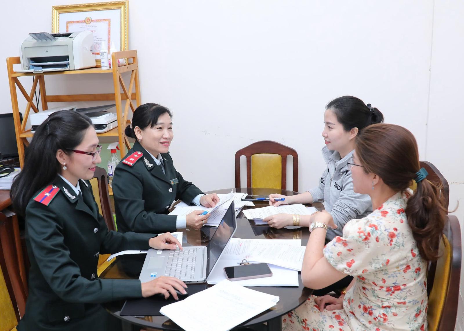 Bà Bùi Thị Mỹ Loan (thứ 2 từ trái qua phải) tại Hội nghị đảng viên Đảng bộ Thanh tra tỉnh Sóc Trăng. Ảnh: Thu Huyền