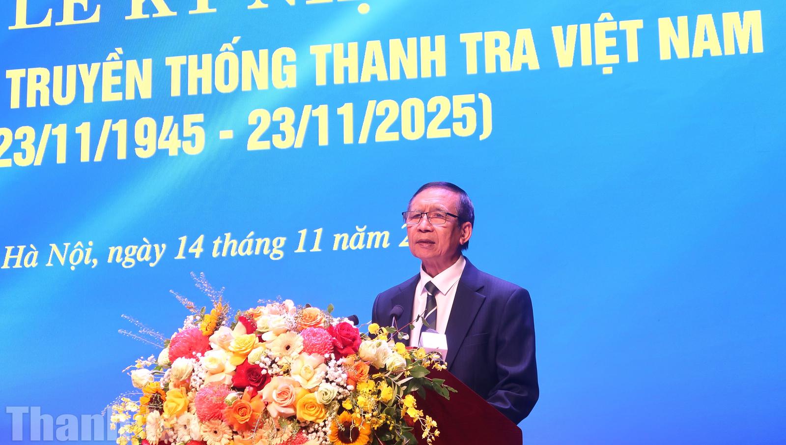 Nguyên Phó Tổng Thanh tra Chính phủ Lê Tiến Hào cùng lãnh đạo Thanh tra Chính phủ và các đại biểu dự lễ kỷ niệm 80 năm Ngày Truyền thống ngành Thanh tra do Thanh tra Hà Nội tổ chức. Ảnh: HH