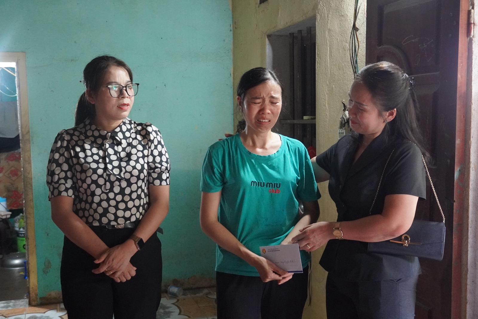 Chị Hà xúc động gửi lời cảm ơn tới sự quan tâm, tình cảm của những cán bộ thanh tra. Ảnh: TH