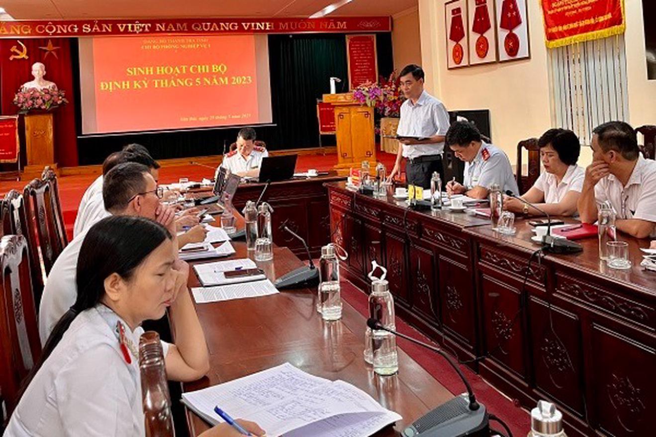 Lãnh đạo Đảng ủy Khối cơ quan và doanh nghiệp tỉnh dự và chỉ đạo buổi sinh hoạt định kỳ tháng 5/2023 của Chi bộ Phòng Nghiệp vụ I, Đảng bộ Thanh tra tỉnh Yên Bái. Ảnh: Đại Quyền