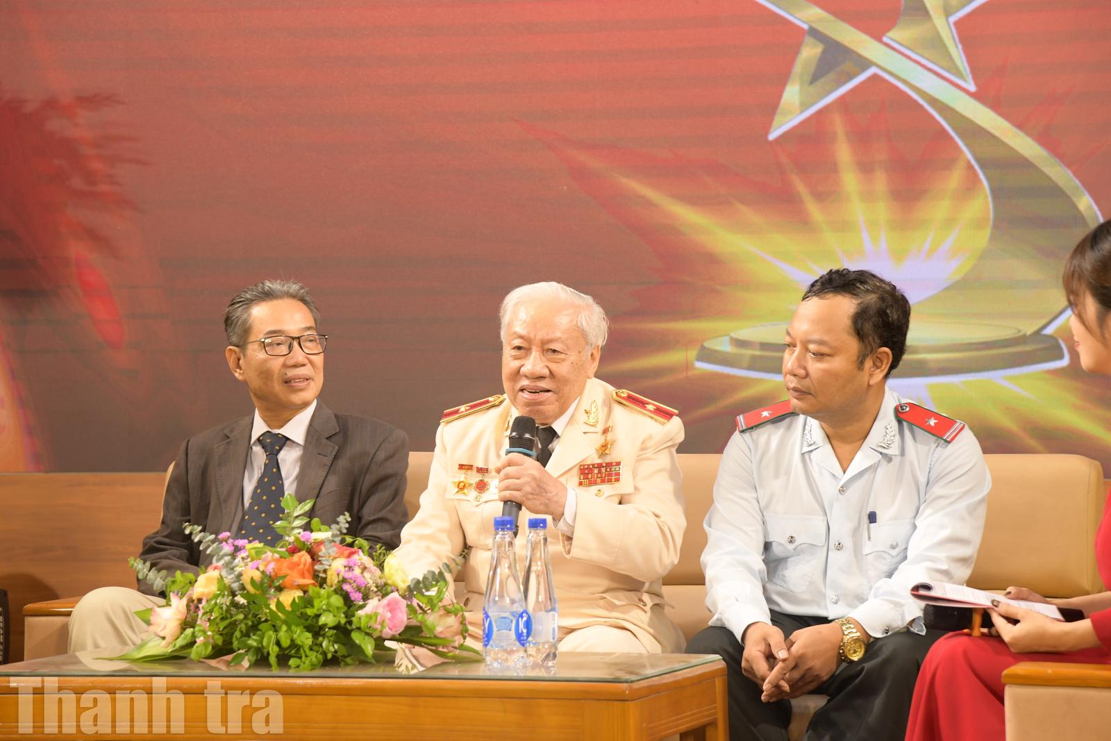 Tại buổi giao lưu, ông có nhấn mạnh về “giữ vững kỷ cương đất nước” là tinh thần cốt lõi trong tư tưởng Hồ Chí Minh về xây dựng Nhà nước liêm chính, kỷ luật, vì dân phục vụ. Và người dân biết đến ông thời còn làm Chánh Thanh tra Bộ Công an là có những vụ việc kéo dài hàng năm, nhưng ông và đồng đội kiên quyết theo đến cùng, “vì nếu buông xuôi, niềm tin của dân sẽ mất đi mãi mãi”. Ảnh: HT