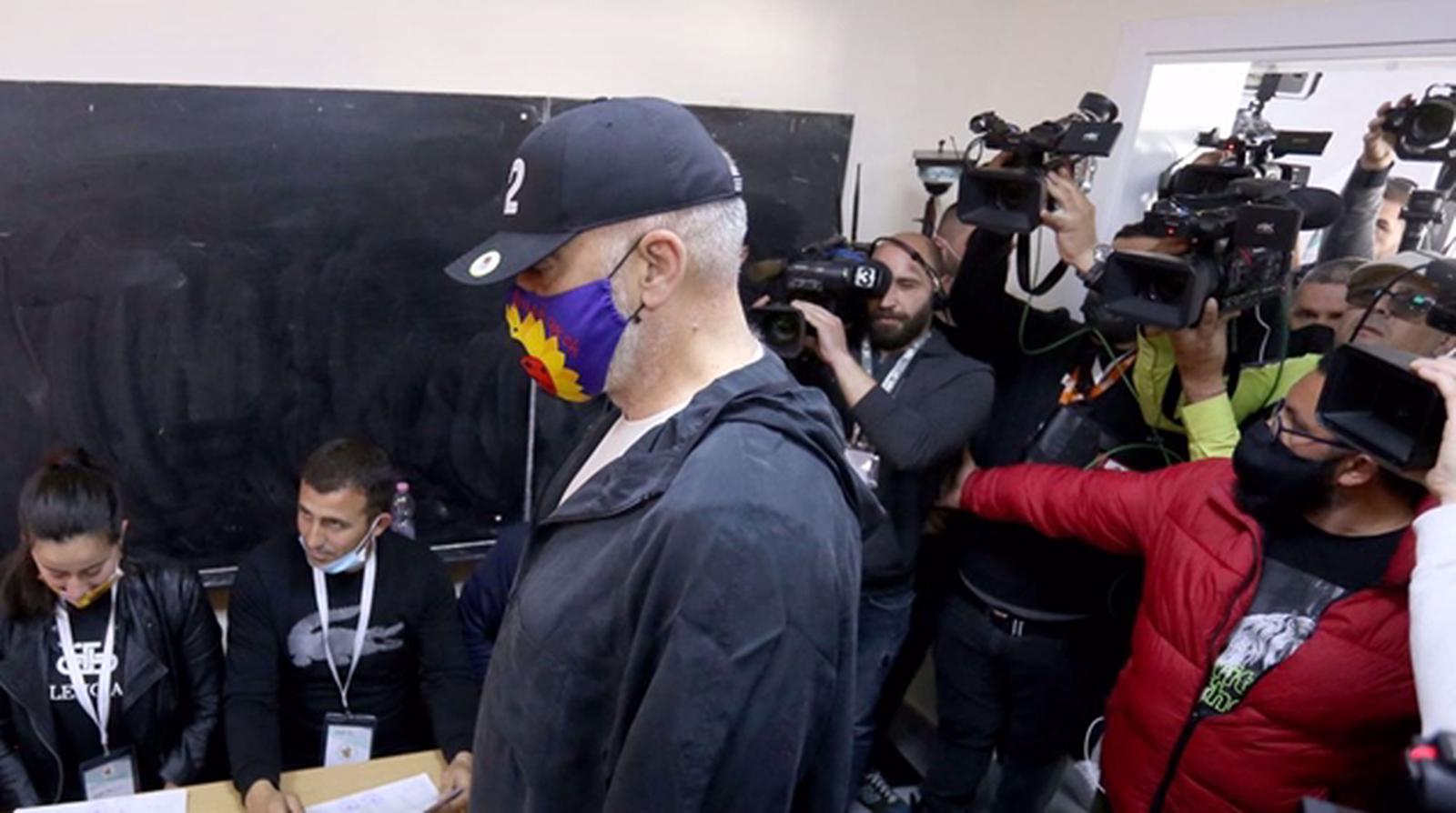 Thủ tướng Albania Edi Rama chuẩn bị bỏ phiếu trong cuộc bầu cử Quốc hội tại một điểm bỏ phiếu ở Tirana ngày 25/4/2021. Ảnh: AFP
