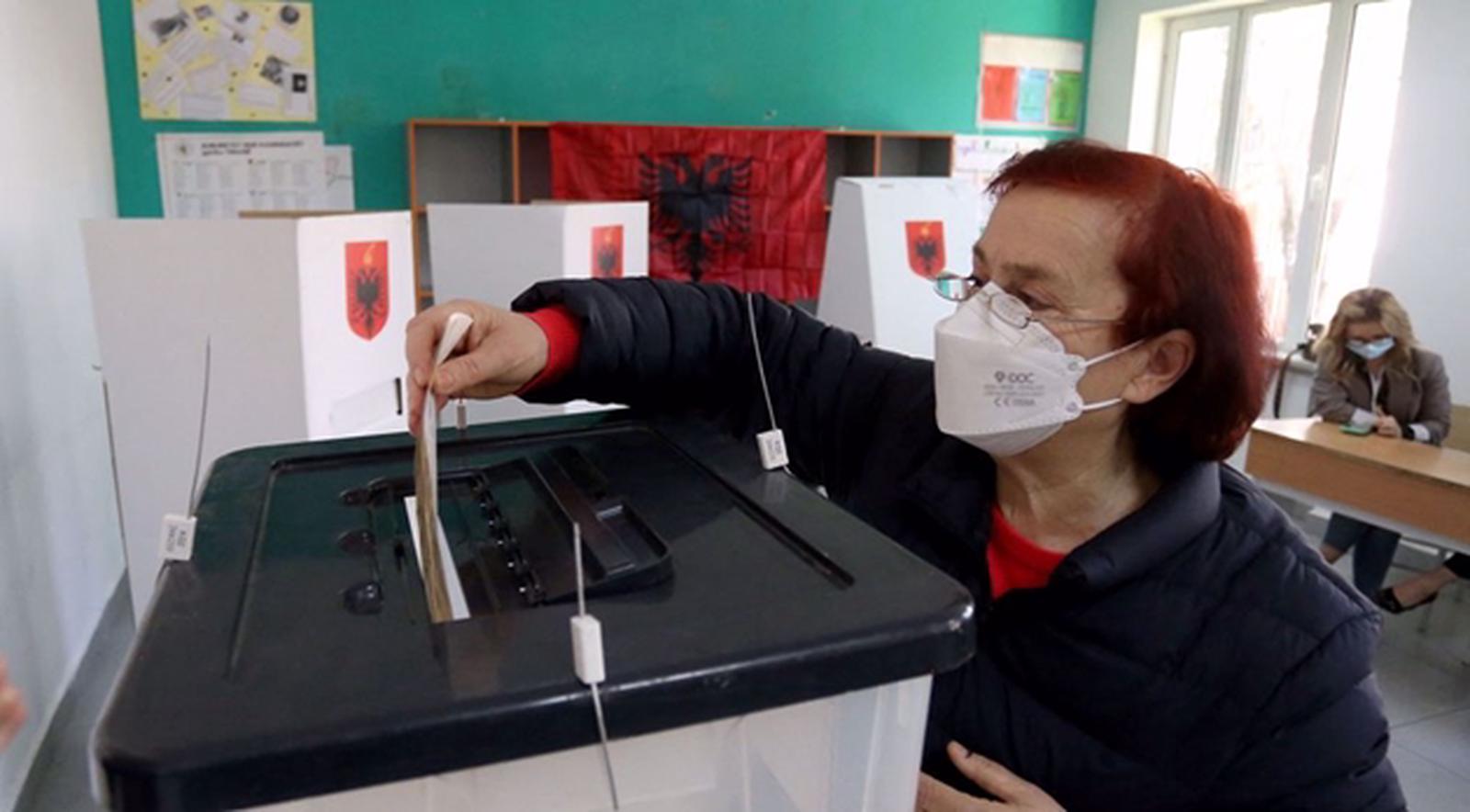 Một phụ nữ bỏ phiếu trong cuộc bầu cử Quốc hội tại điểm bỏ phiếu ở Tirana, ngày 25/4/2021. Ảnh: AFP