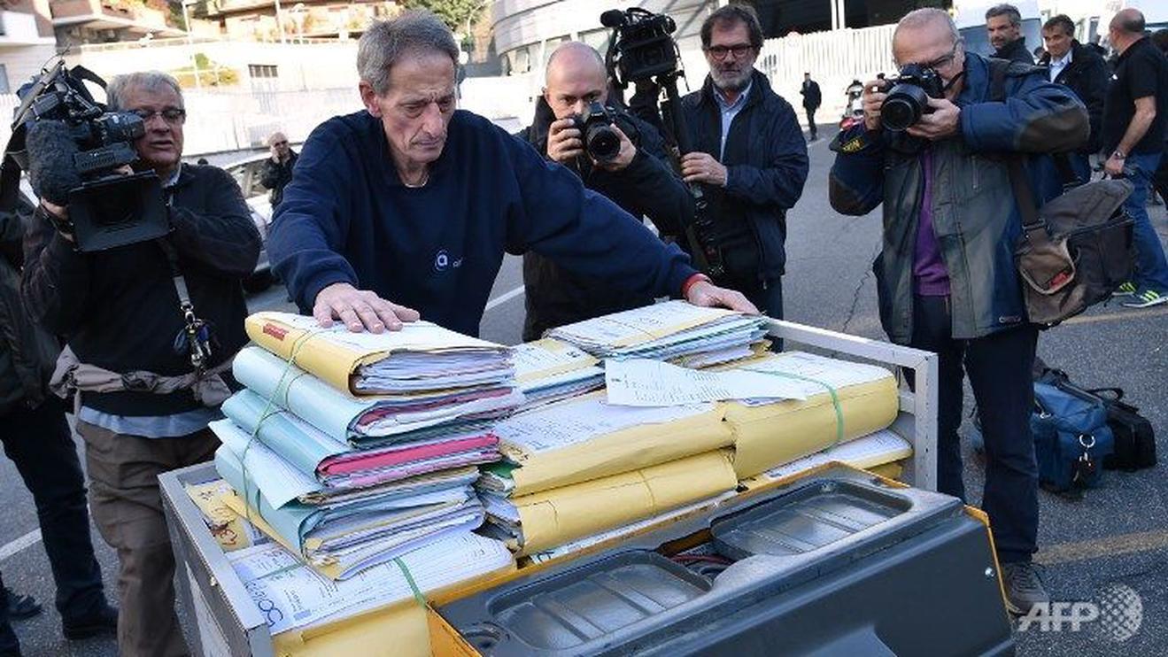 Một nhân viên Tòa án Hình sự TP Roma đẩy xe chất đầy hồ sơ vào tòa để phục vụ cho phiên xét xử. Ảnh: GettyImages